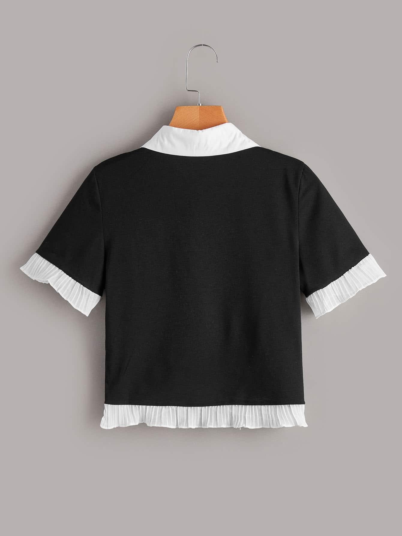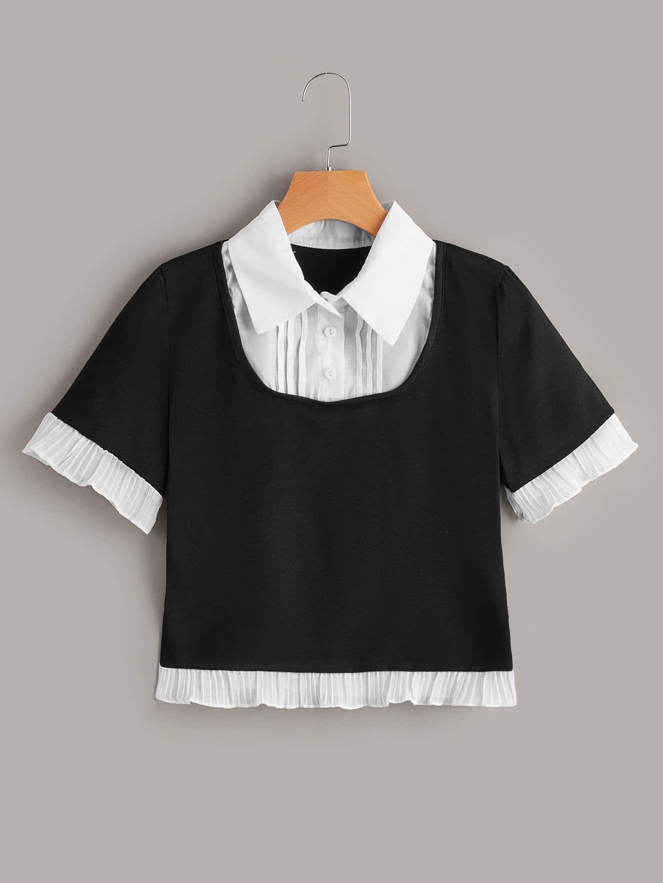 2 In 1 Button Frill Crop Tee