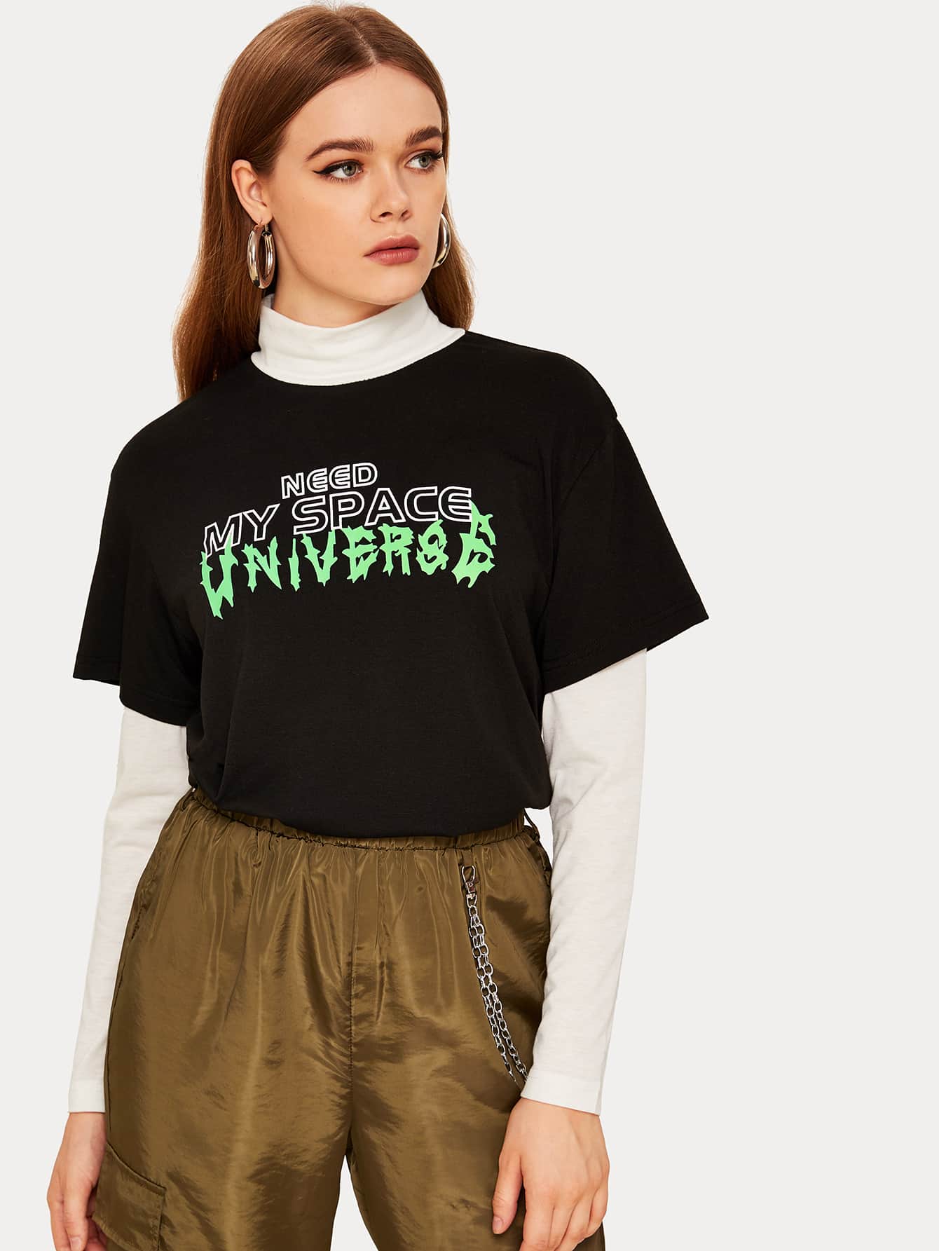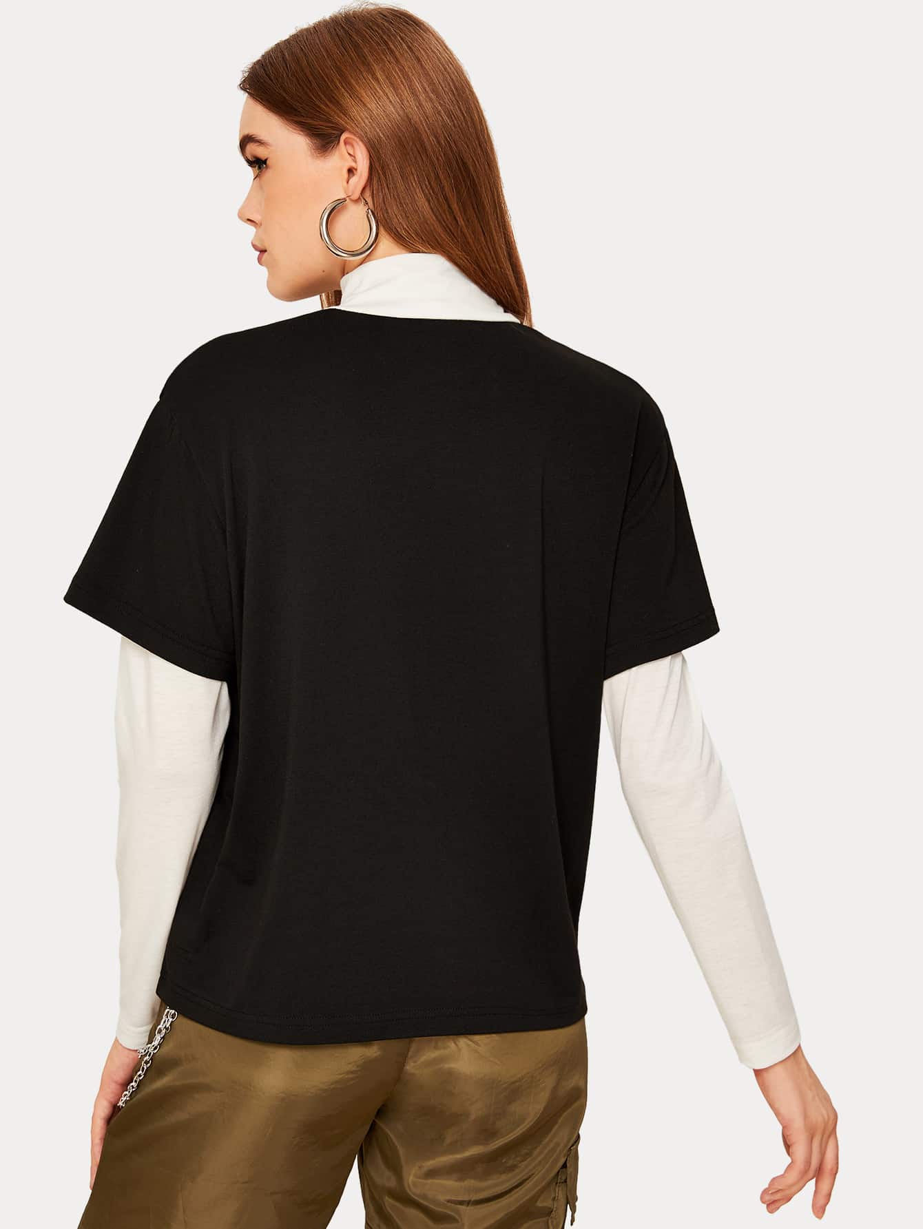 2 In 1 Slogan Graphic Mock Neck Tee