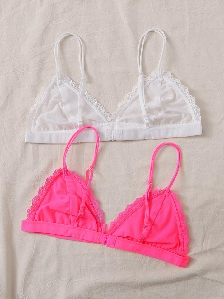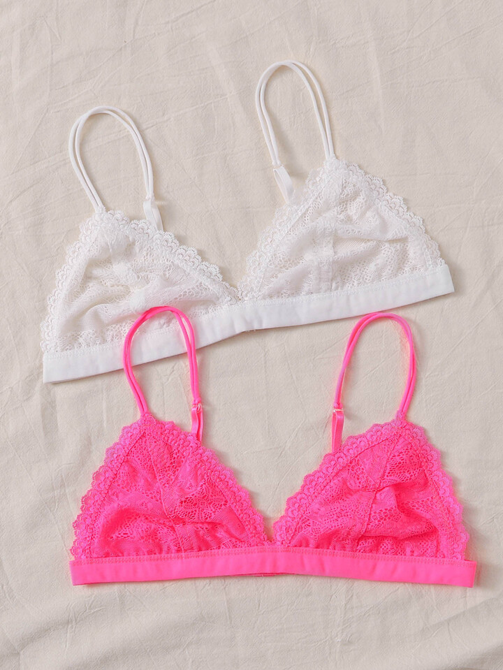 2 Packs Neon Pink Lace Bra Set