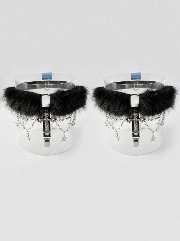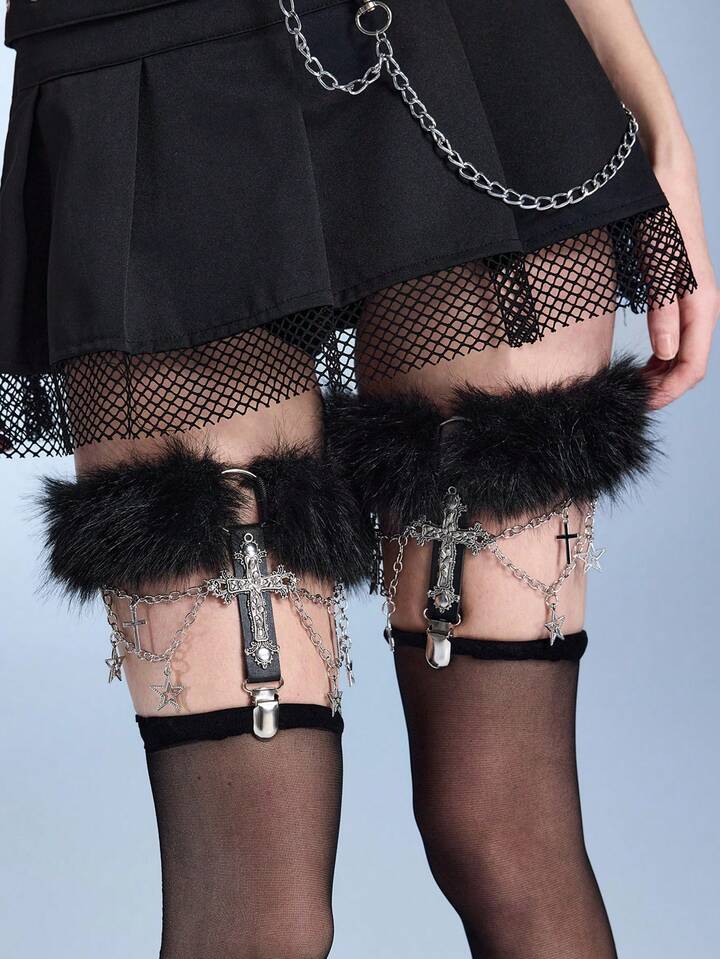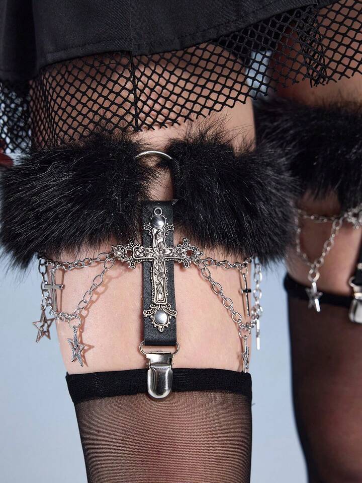 2 Pieces Women's Garter Belt With Black Chain, Five-Pointed Star, Hollow Cross Decor, Gothic Style Leg Garters For Dress, Skirt, Everyday Versatile, Halloween