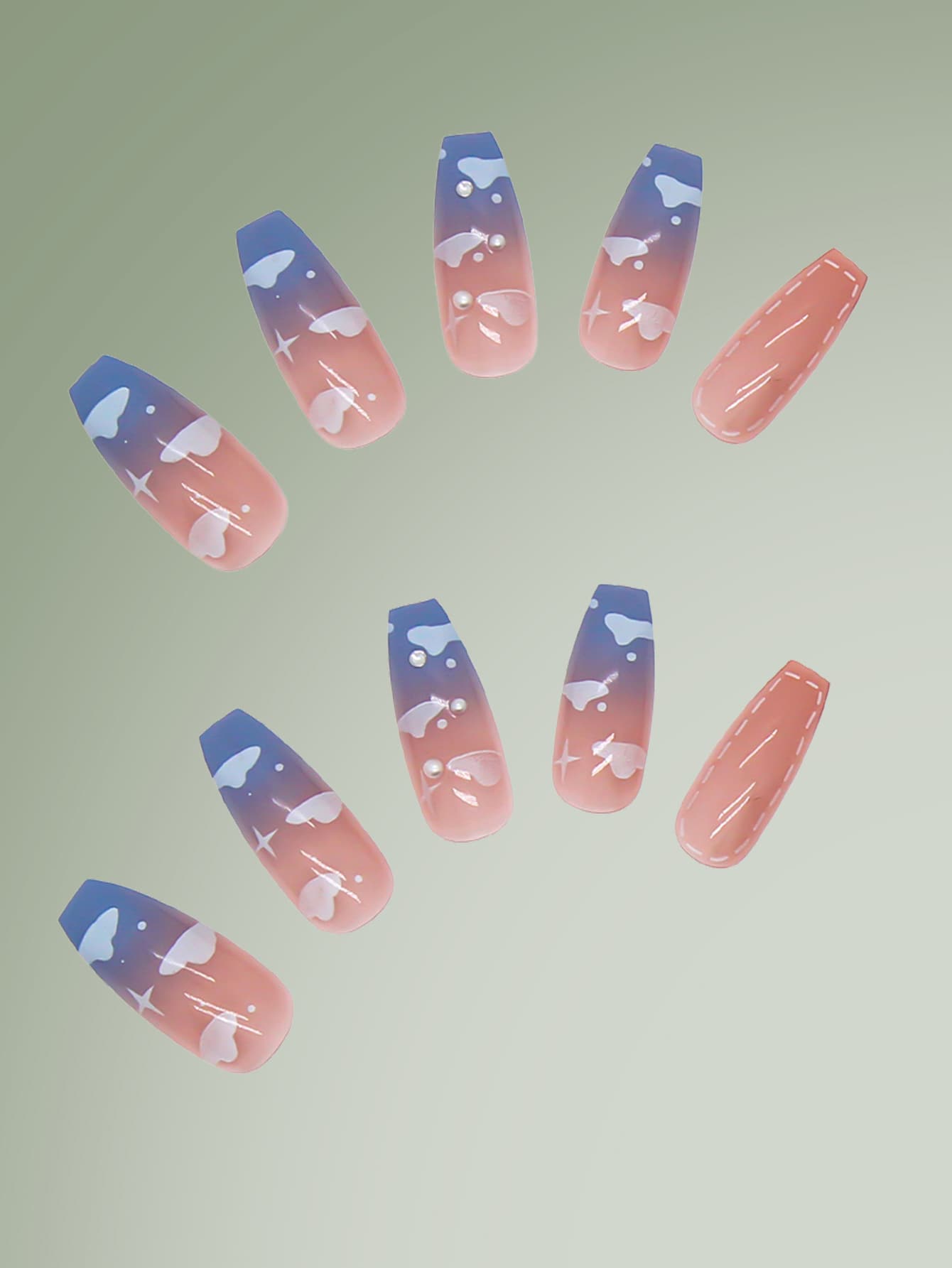 24pcs Coffin 3D Bow Decor Fake Nail & 1sheet Tape