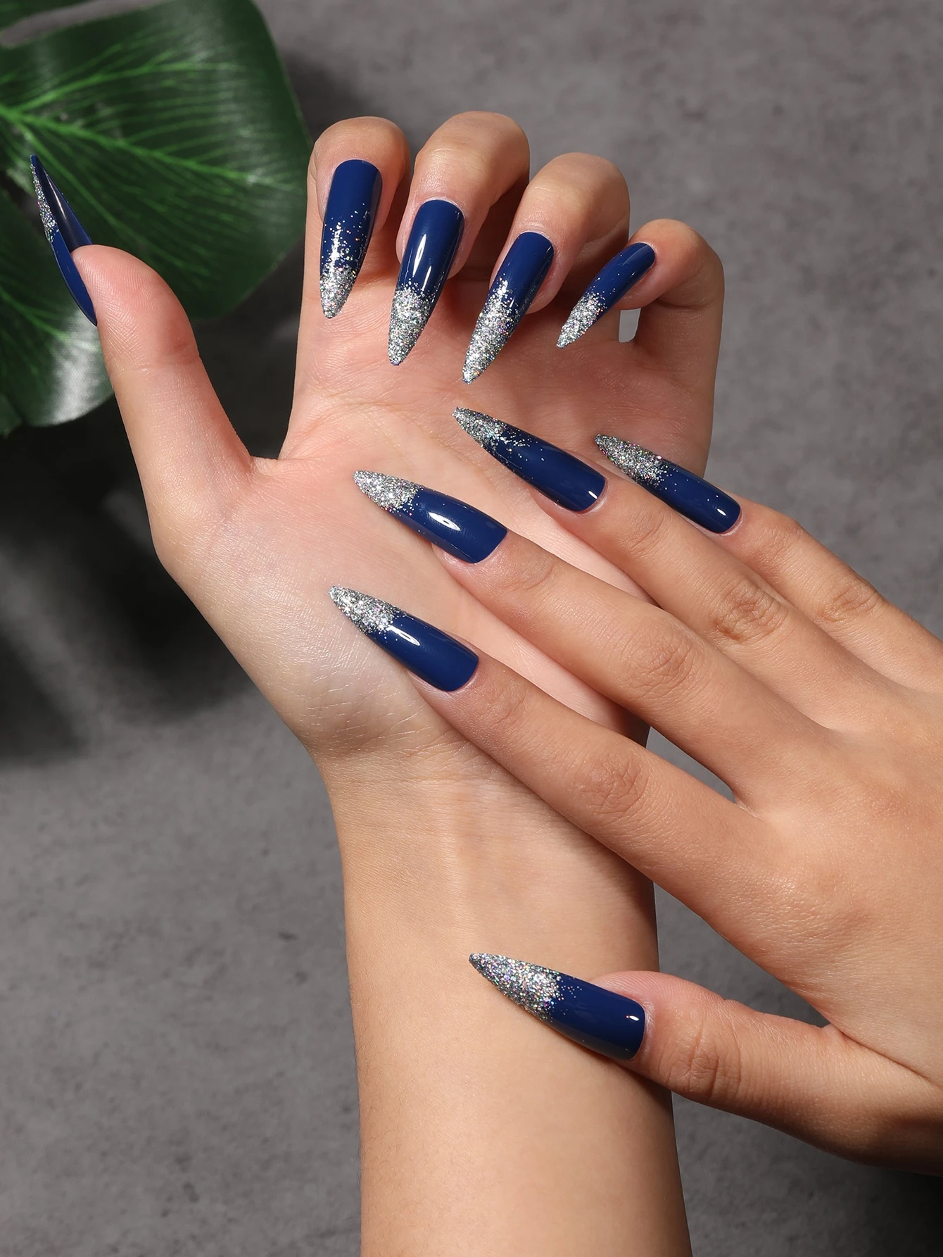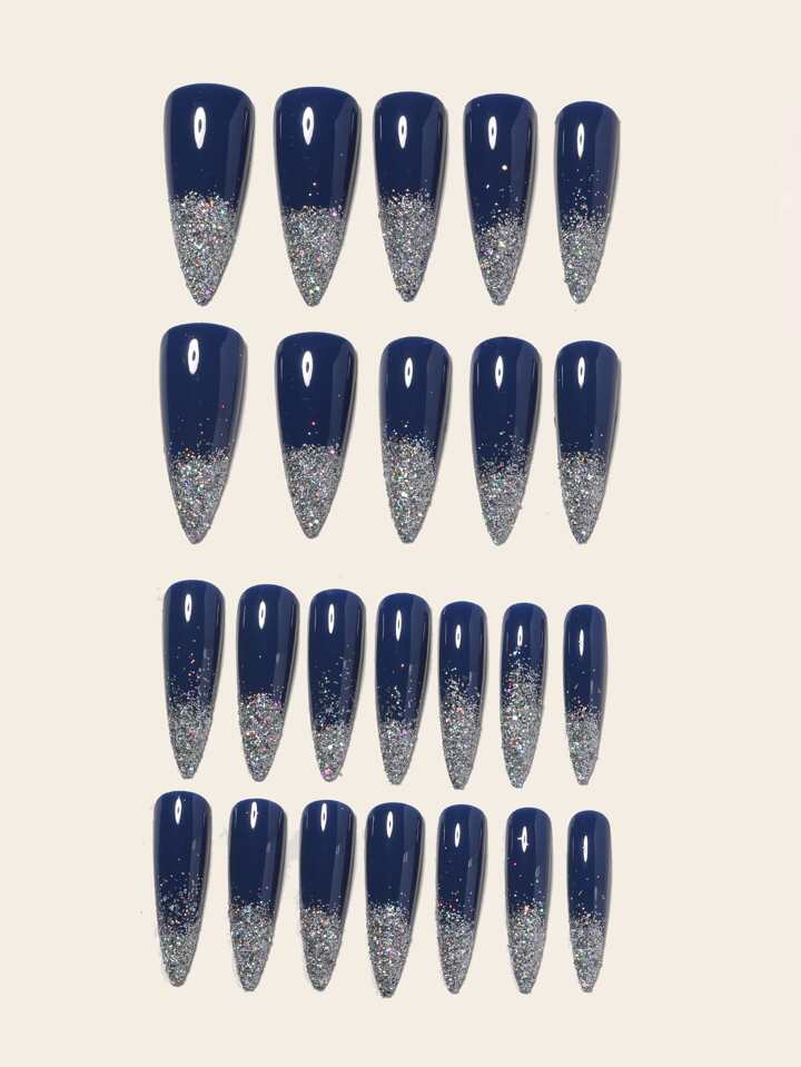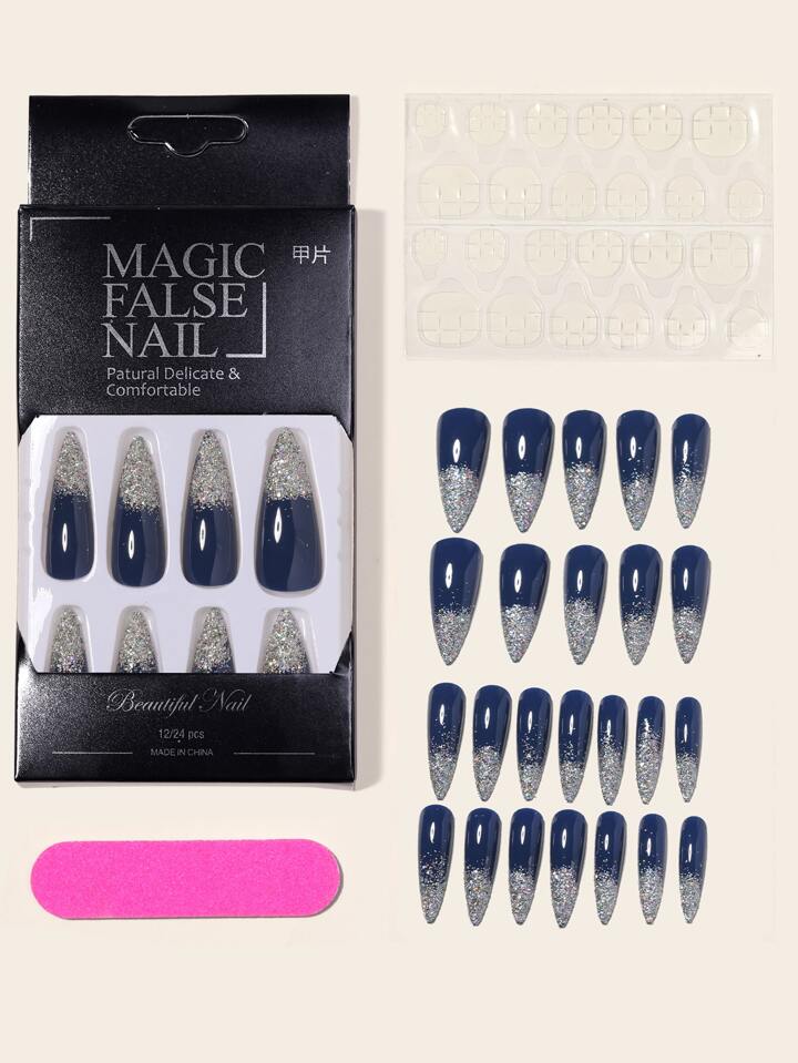 24pcs Glitter Fake Nail & 1sheet Tape & 1pc Nail File