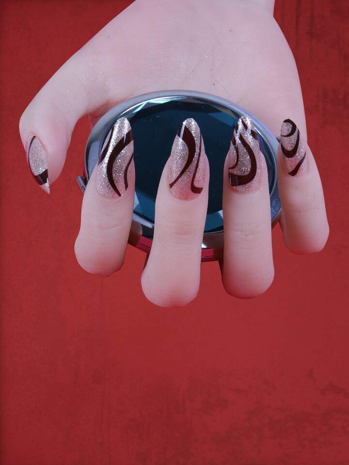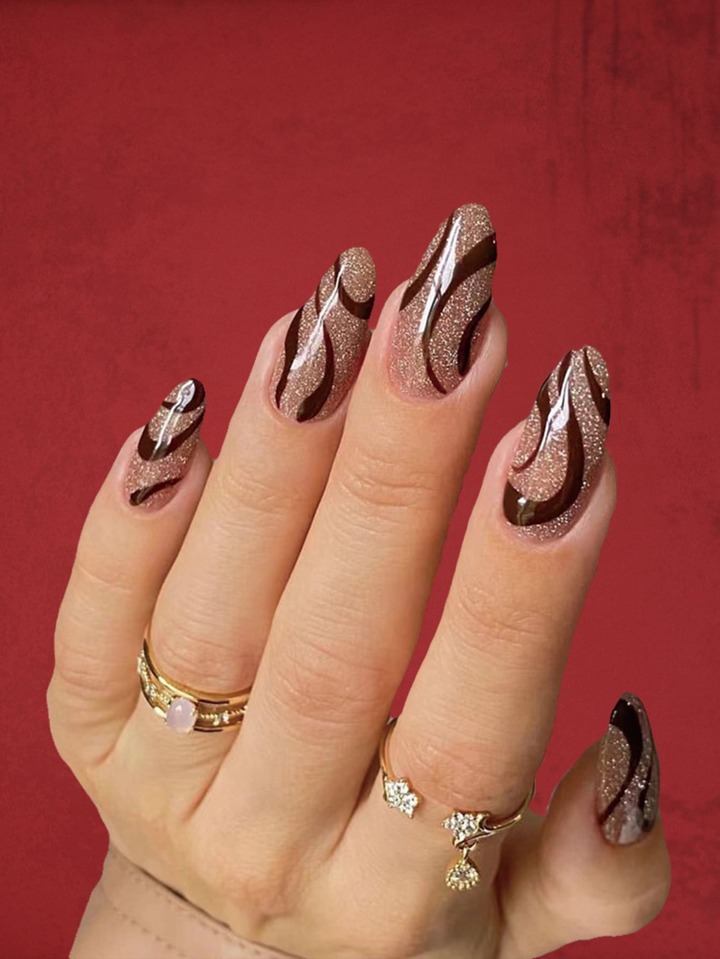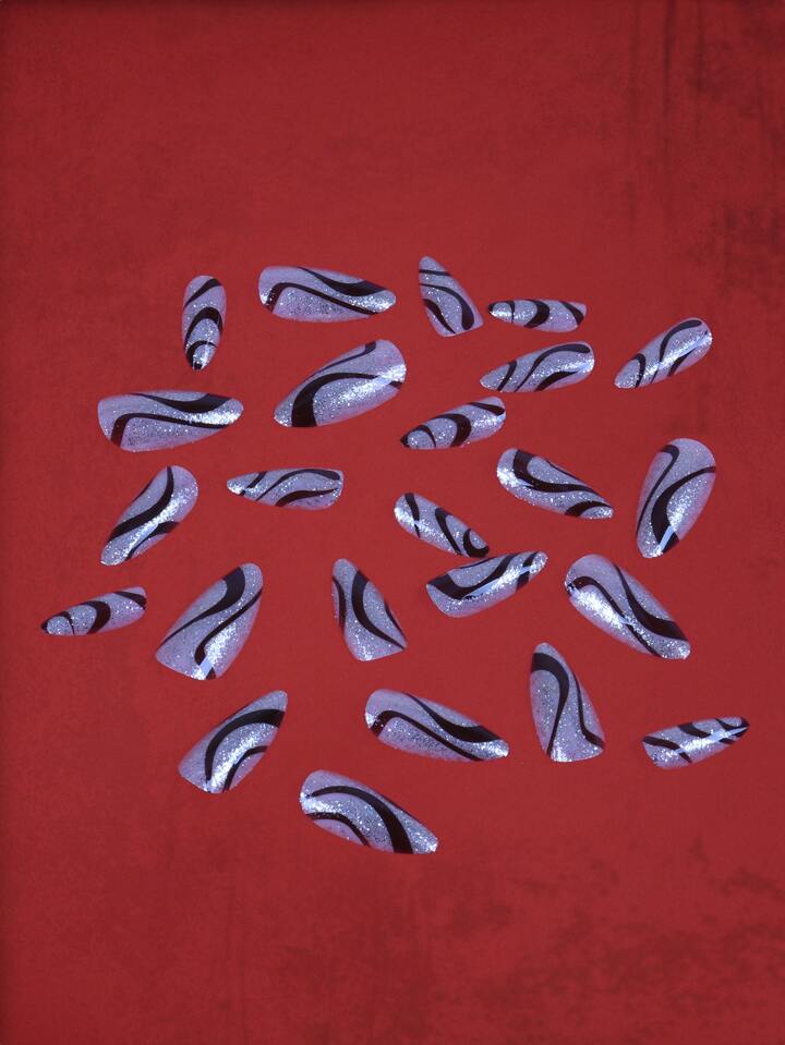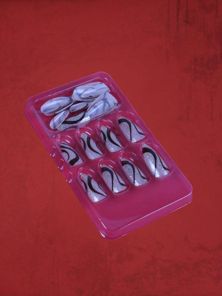24pcs Long Almond Striped Fake Nail & 1sheet Tape