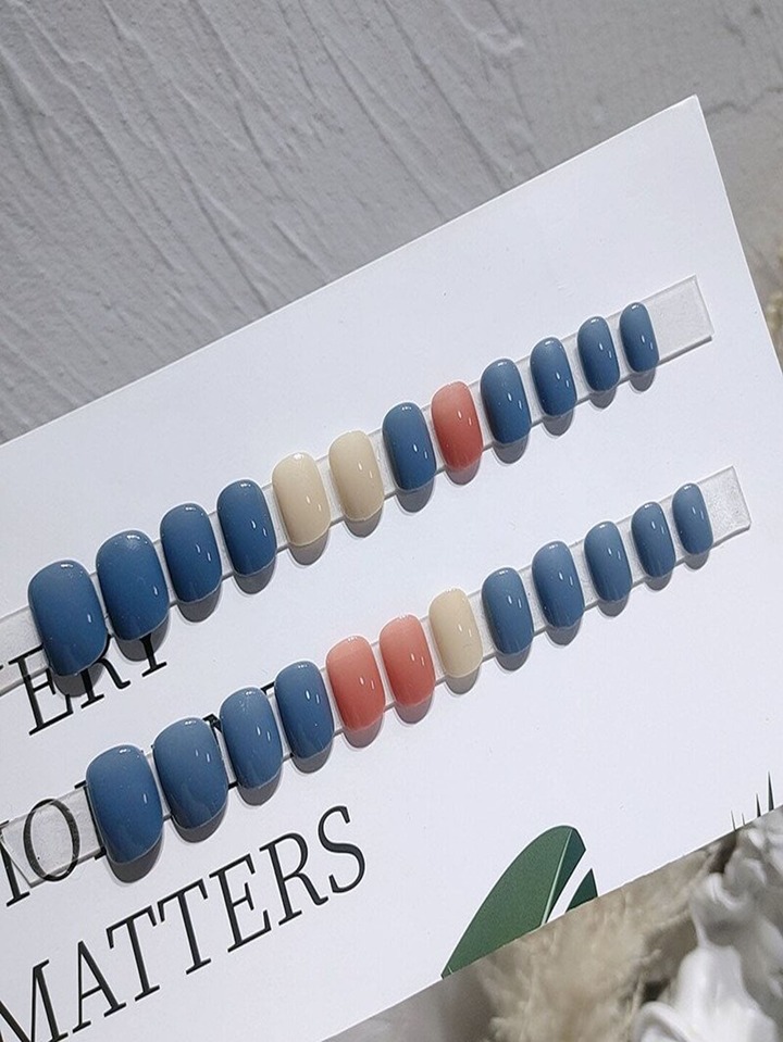 24pcs Short Square Plain Fake Nail & 1sheet Tape