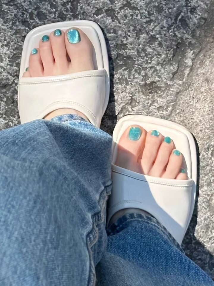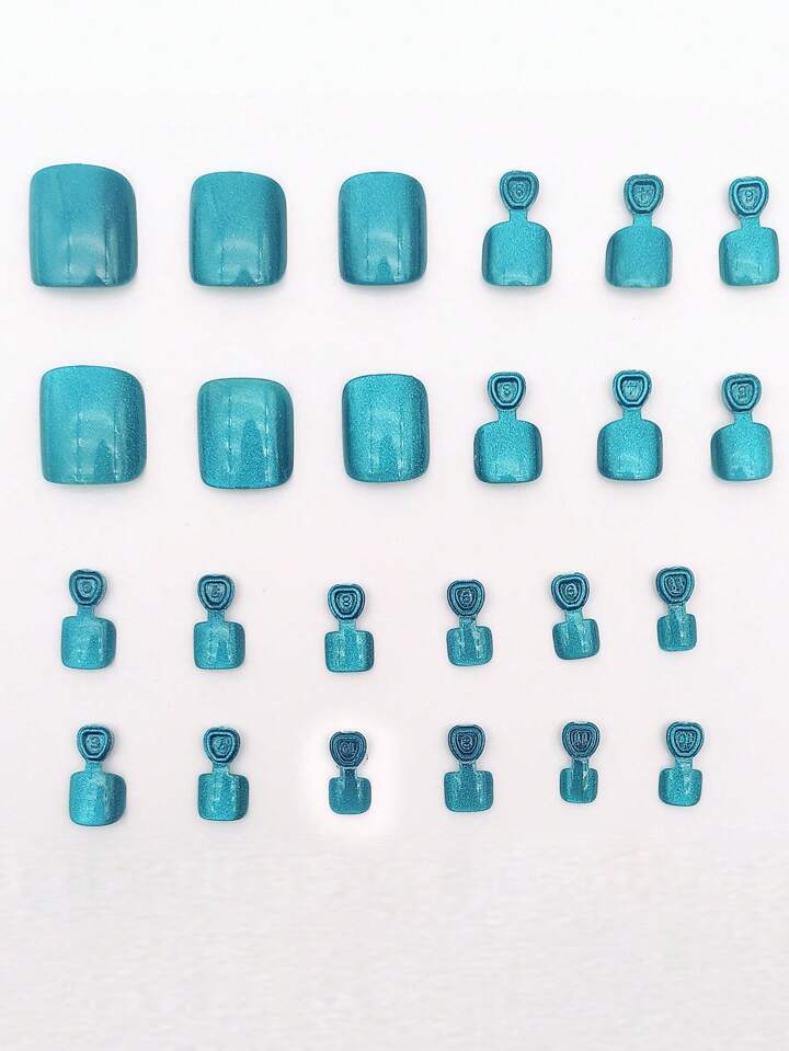 24pcs Short Square Plain Fake Toe Nail & 1sheet Tape & 1pc Nail File