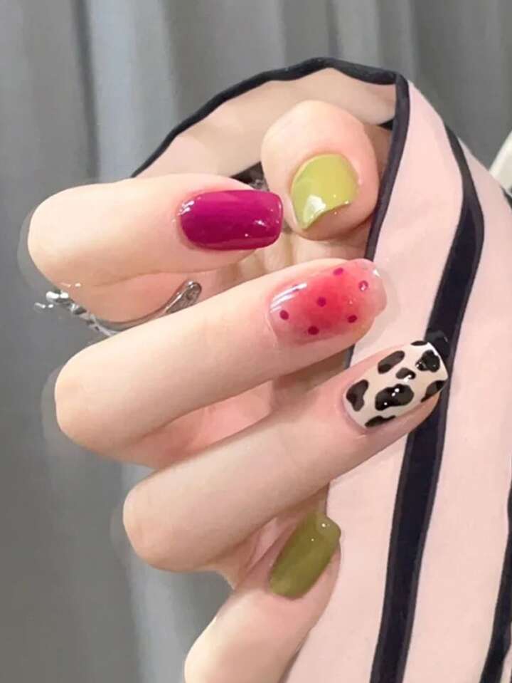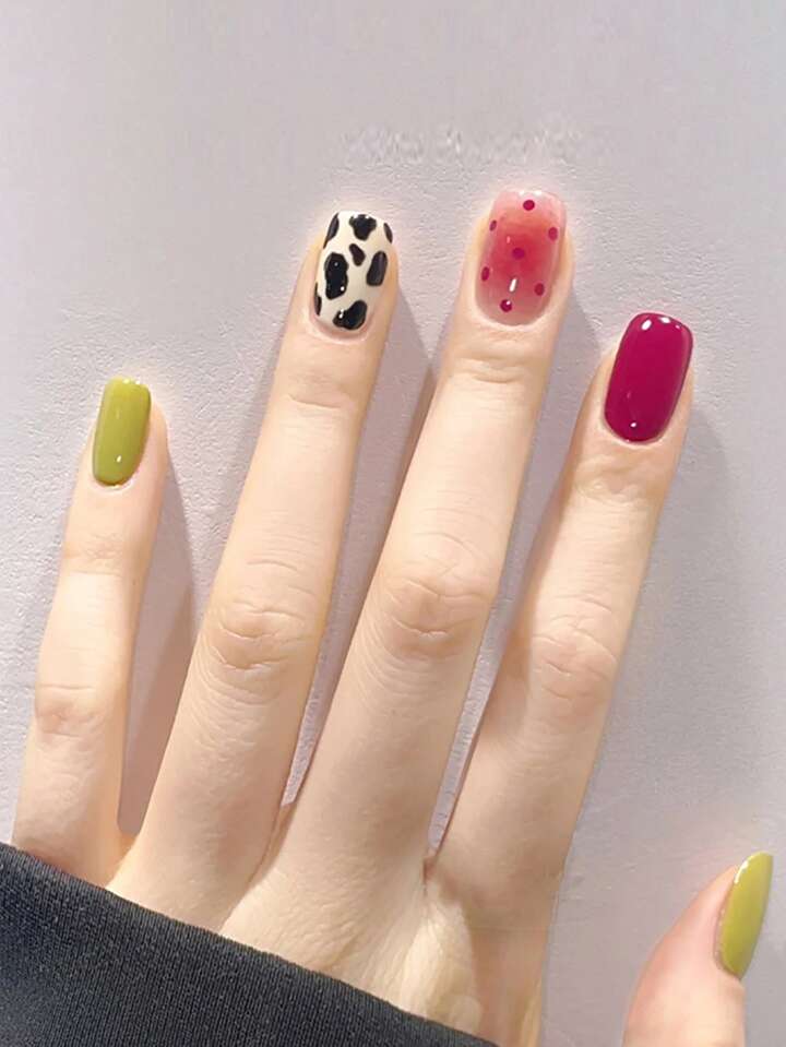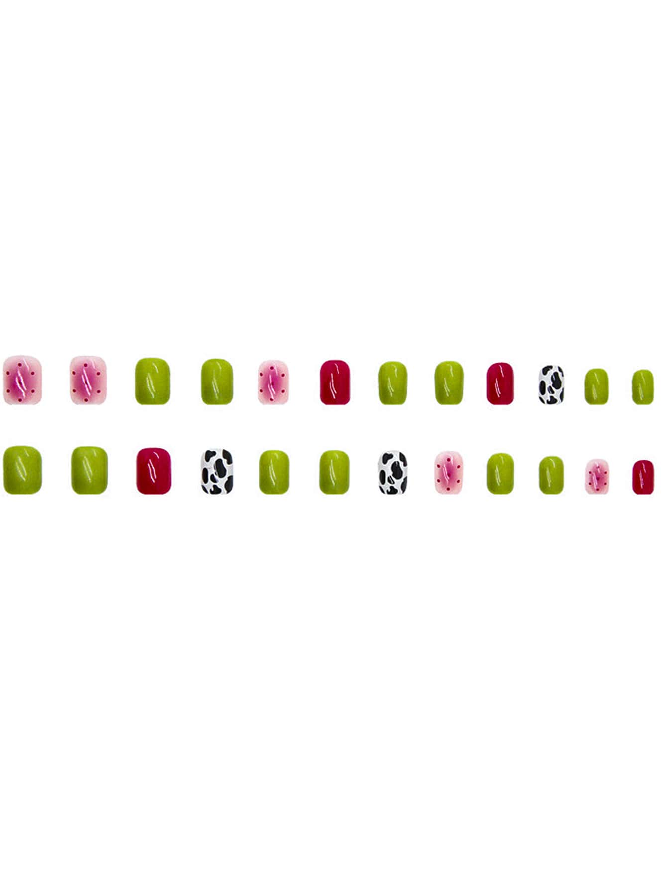 24pcs Square Cow Print Fake Nail & 1sheet Tape