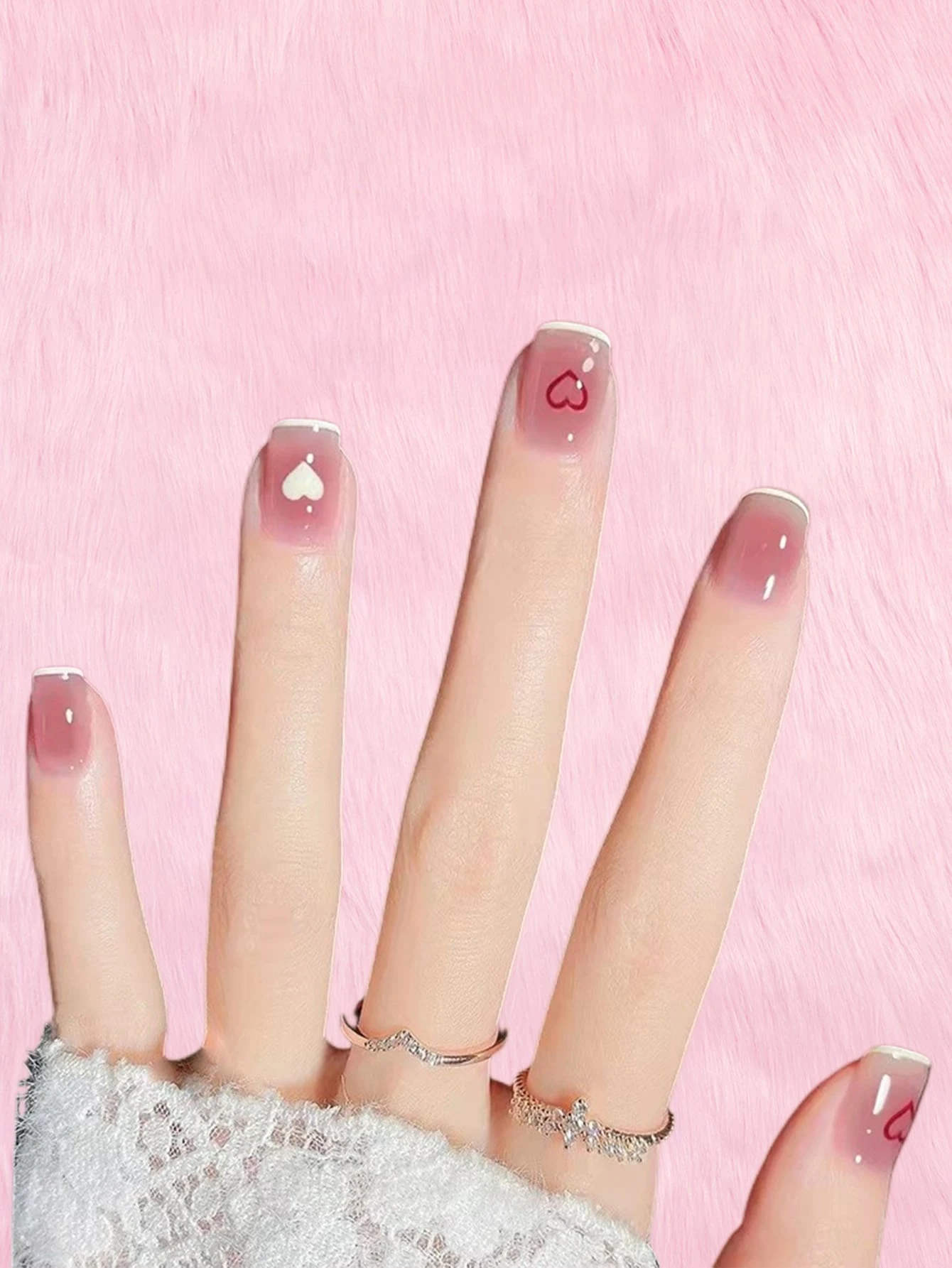 24pcs Square Heart Print Fake Nail & 1sheet Tape