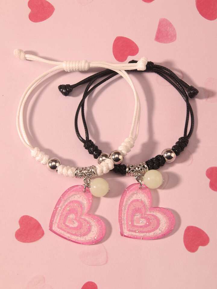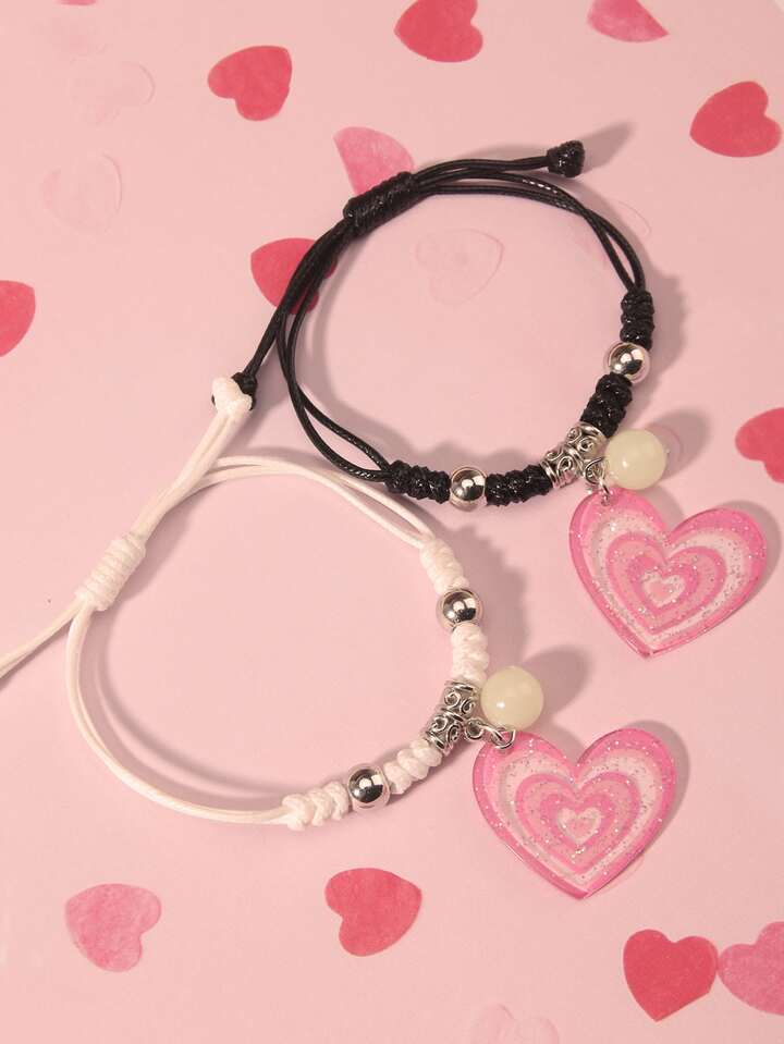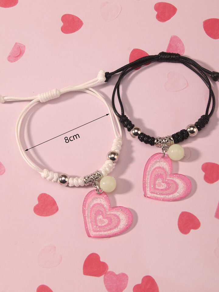 2pcs Heart Charm Bracelet