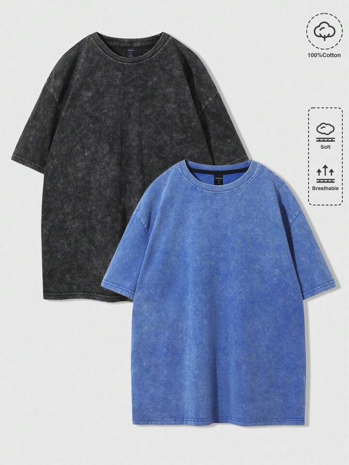 2pcs/Set Men's Vintage Acid-Washed Crafted Casual T-Shirt