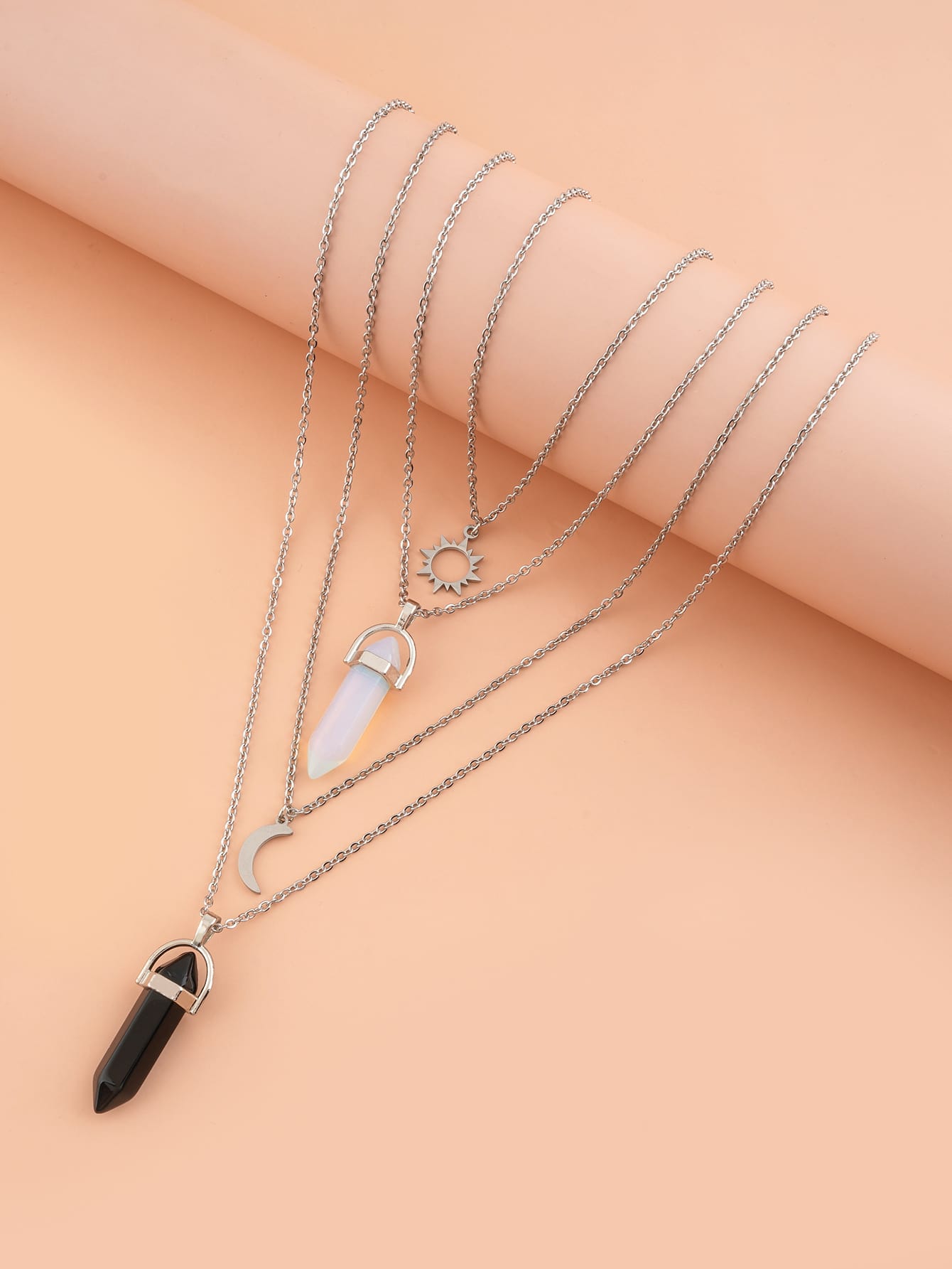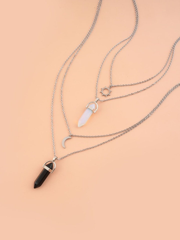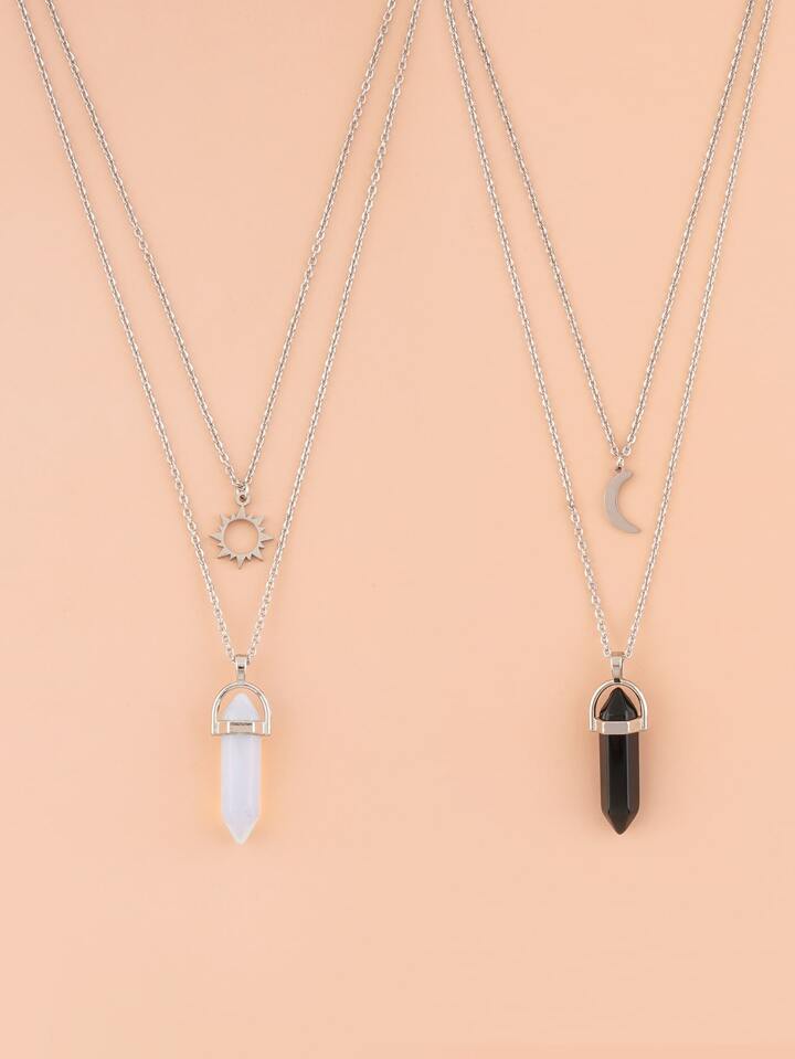 2pcs Sun & Moon Charm Layered Necklace