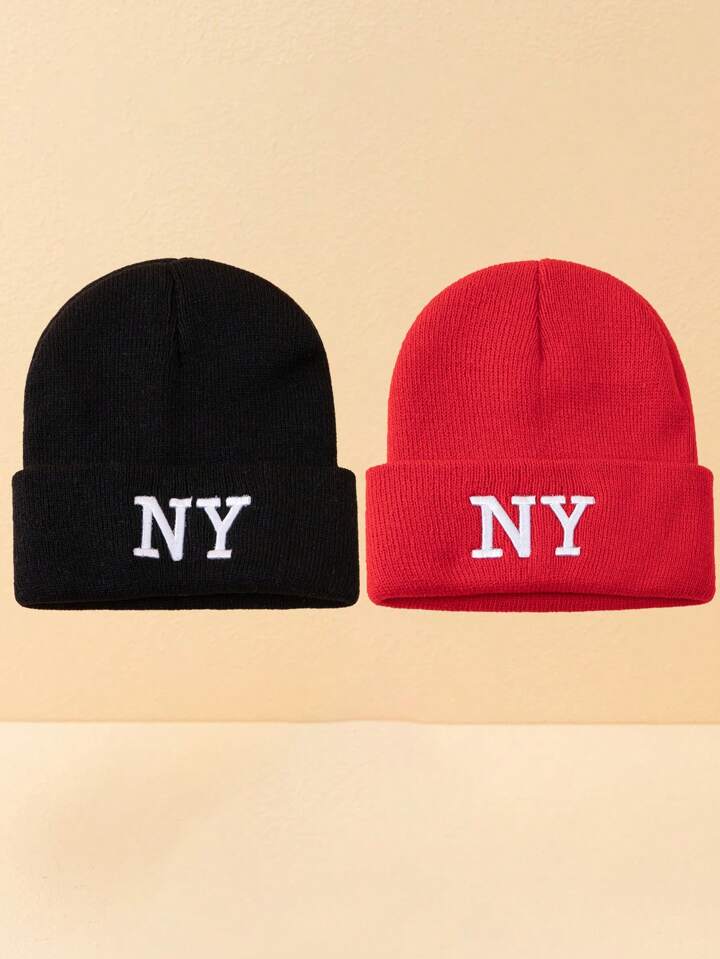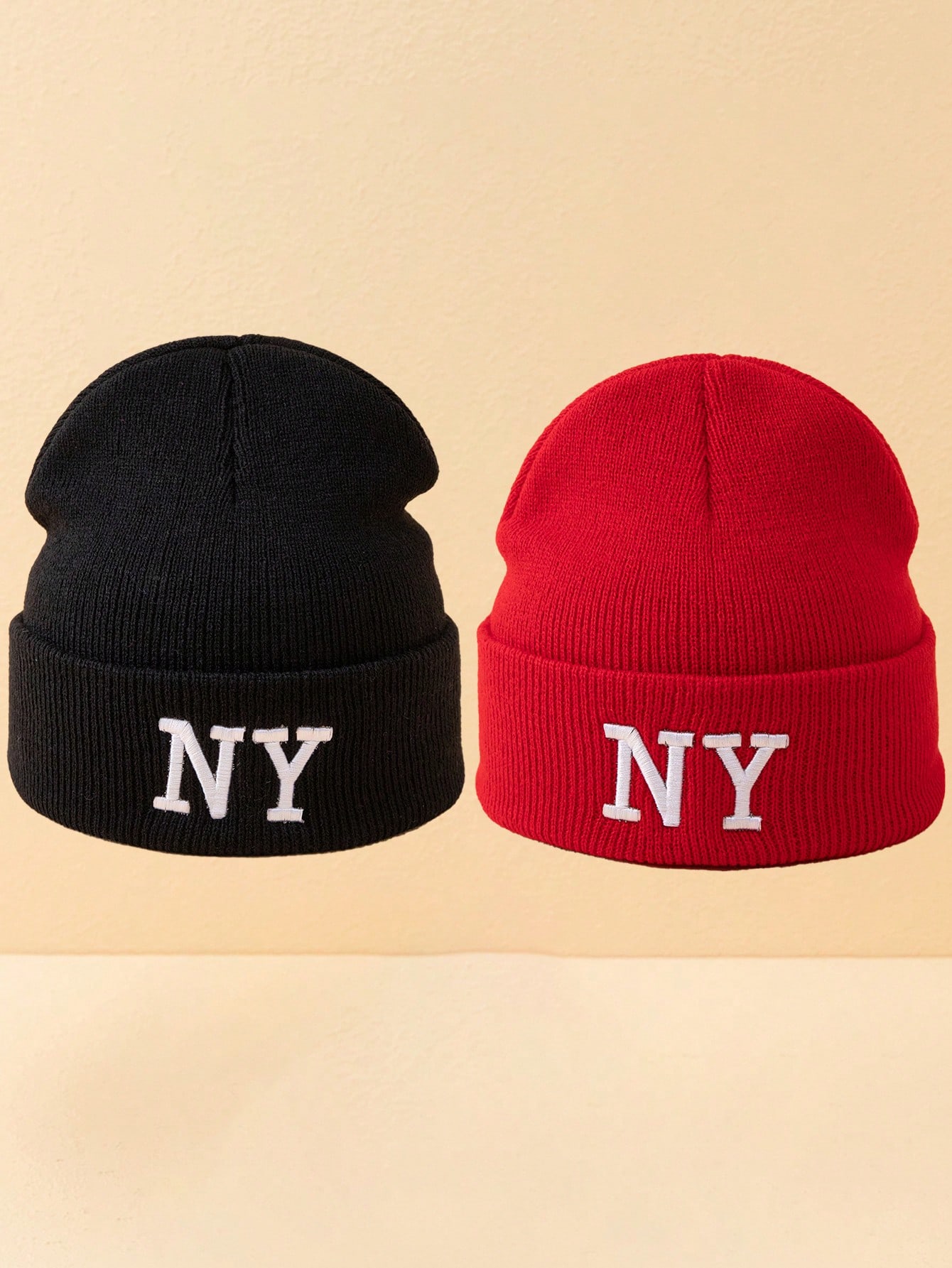 2pcs Women's Knitted Hat With 3d Embroidered Ny Letter Design, Beanie Hat, Suitable For Autumn/winter Outfits