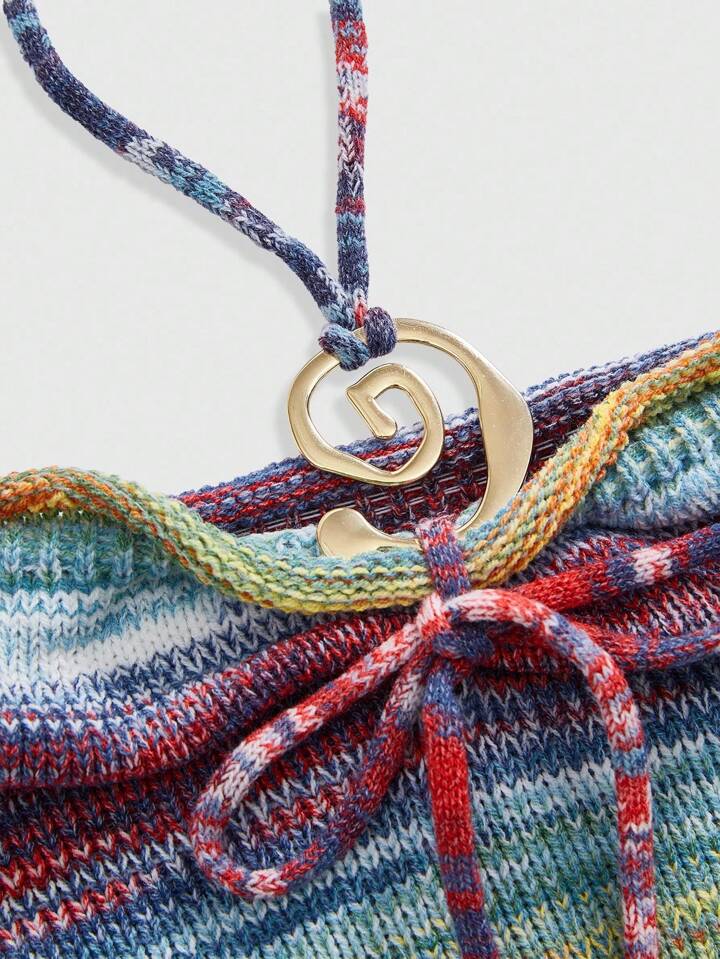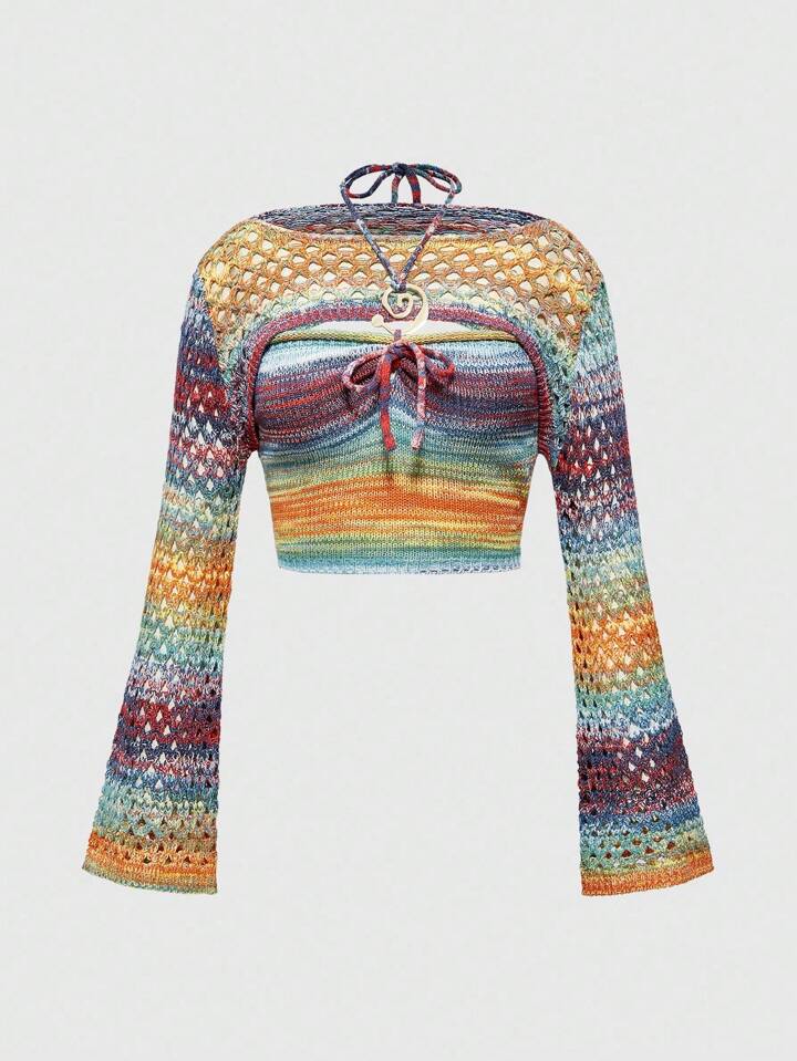 2pcs Y2K Hippie Ombre Knit Vest + Cover Up Sweater Set