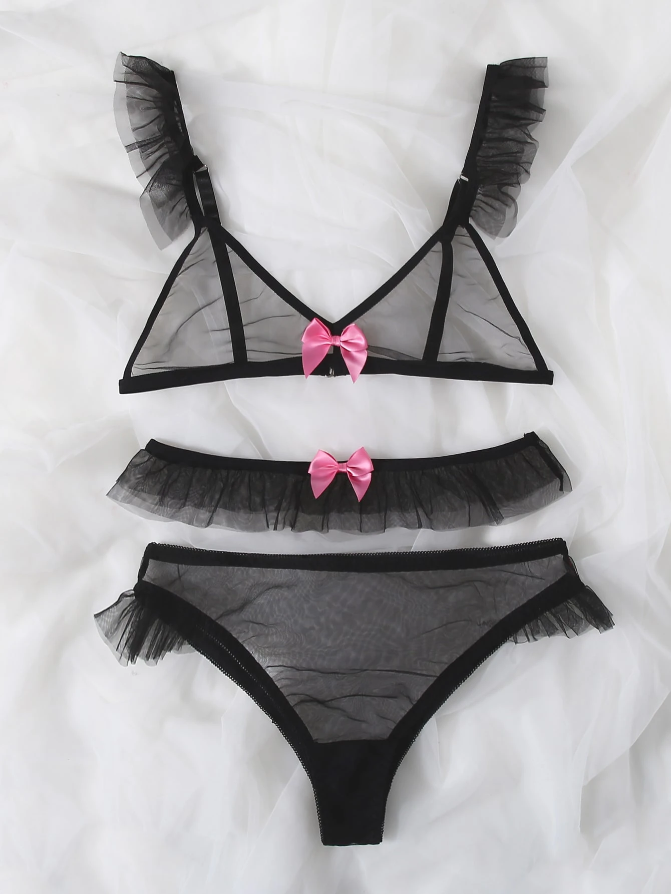 3pack Frill Trim Sheer Mesh Lingerie Set