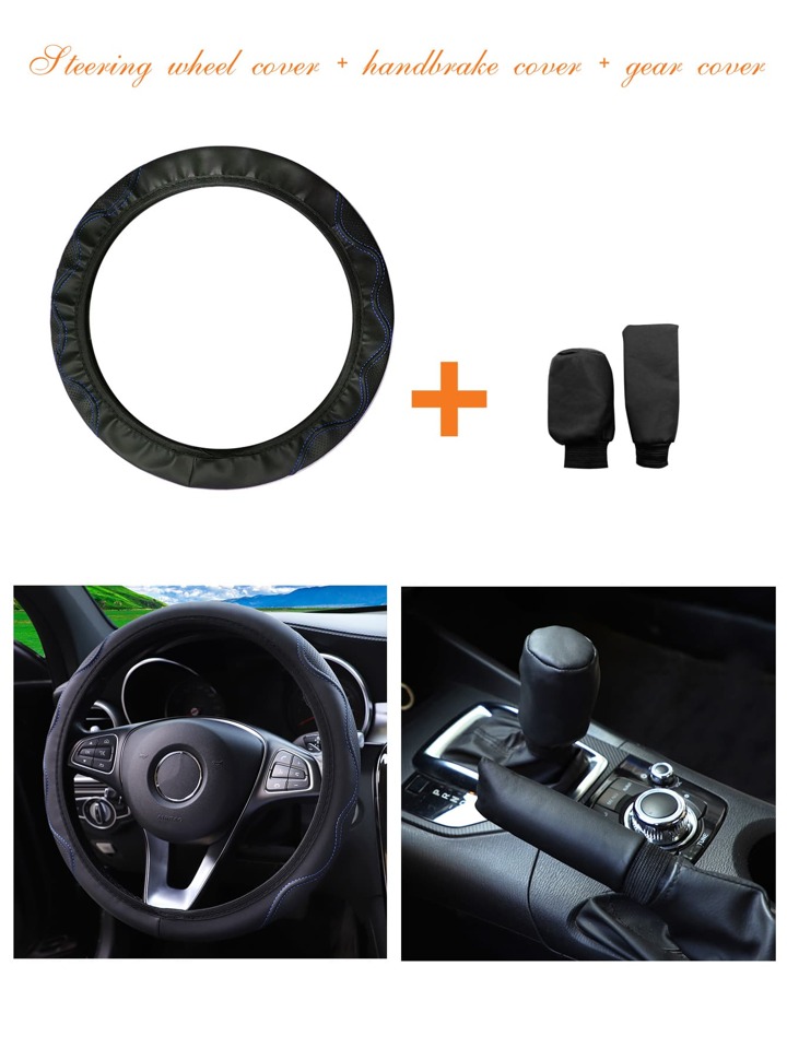 3pcs Car Steering Wheel Cover & Handbrake & Gear Shift Cover