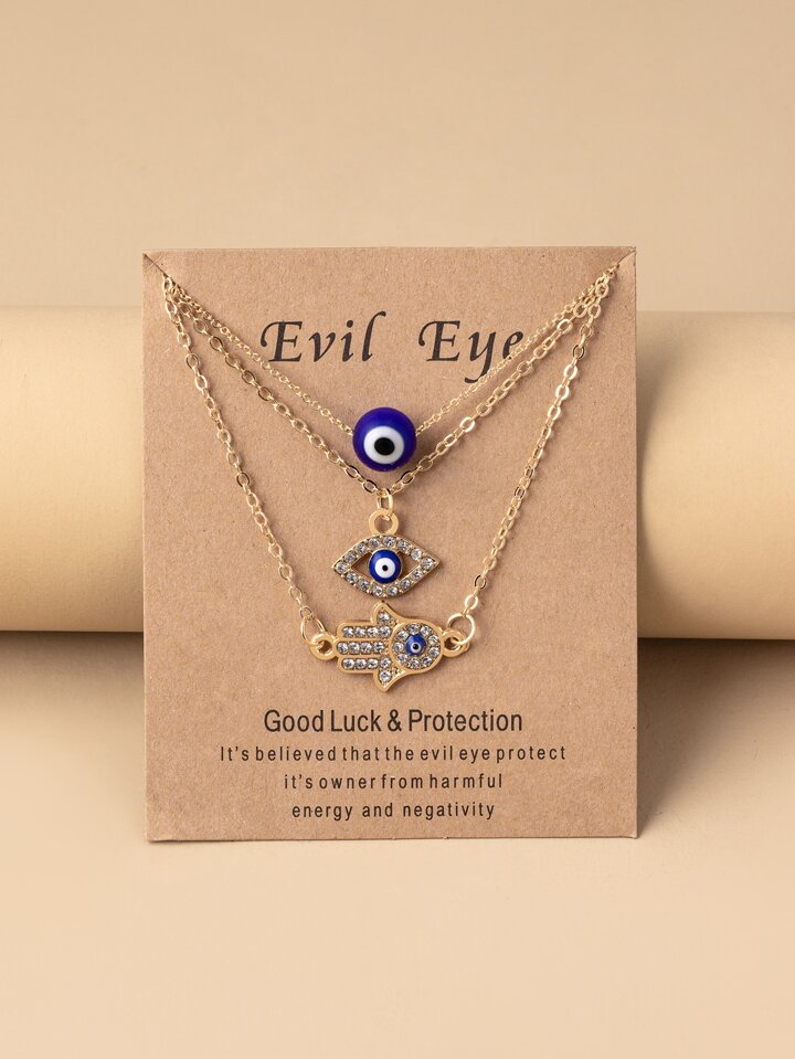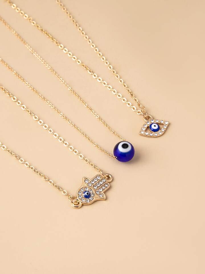 3pcs Evil Eye & Hand Charm Necklace