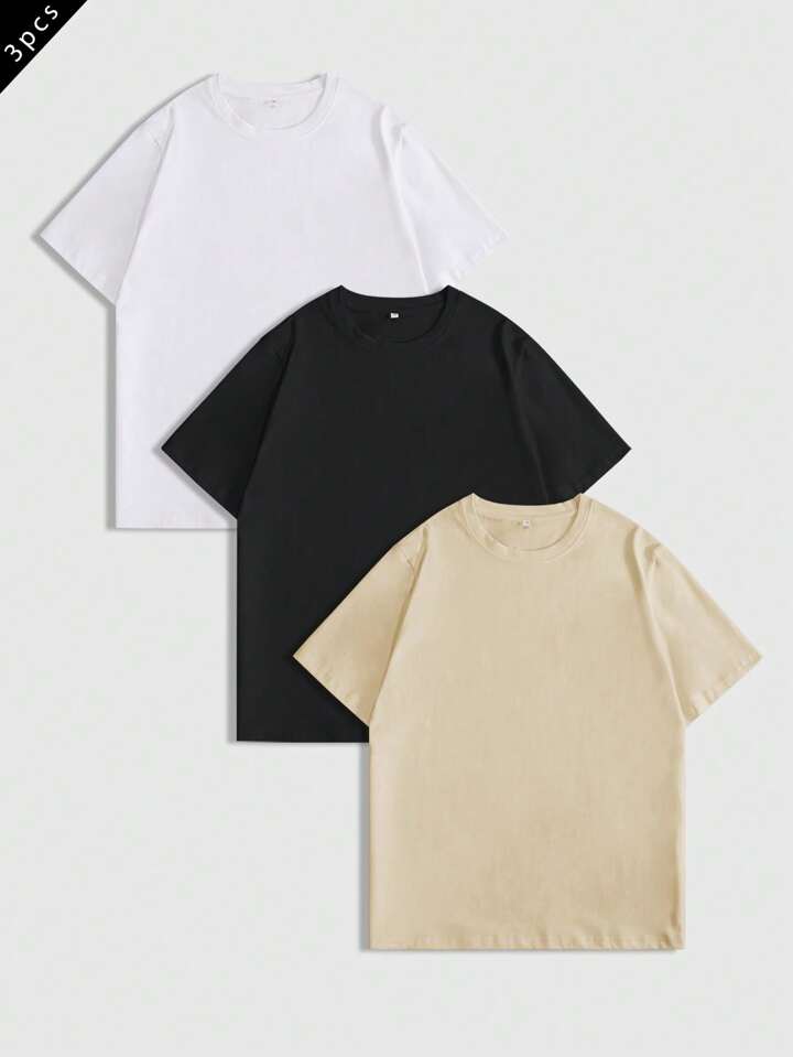 3pcs Men's Fashion Casual Brand Round Neck Short Sleeve T-Shirt