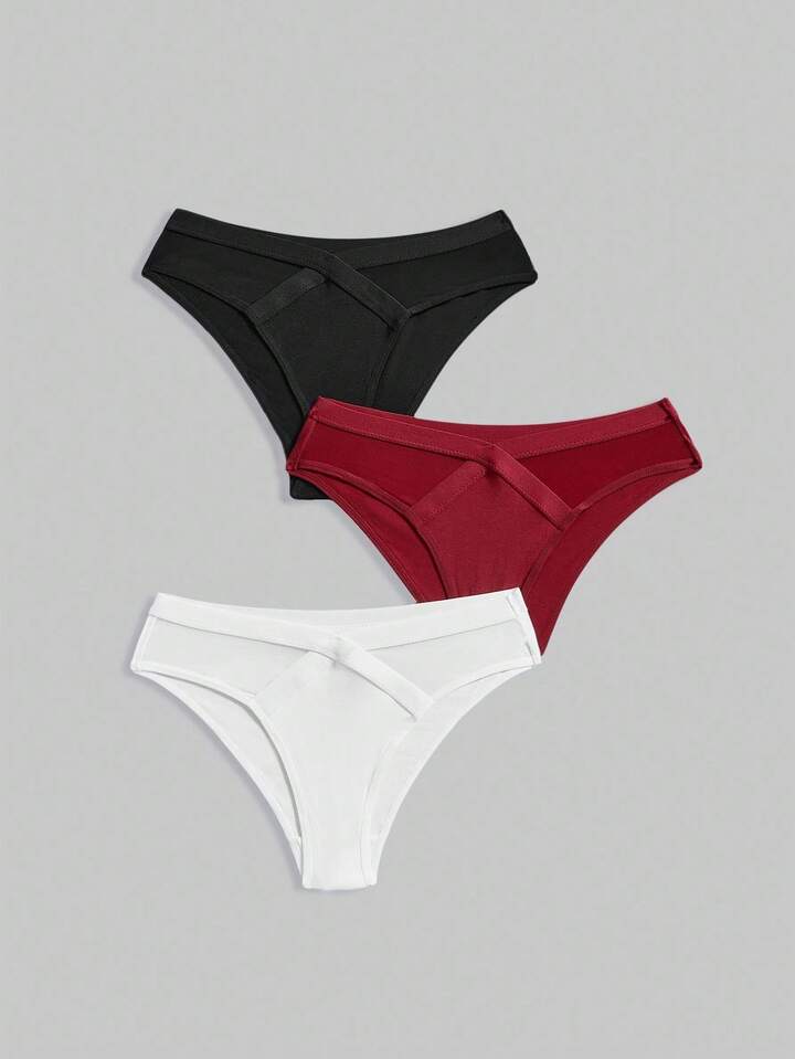 3pcs/Pack Elegant Women's Mesh Trim Bikini Panties, Casual Daily Wear
