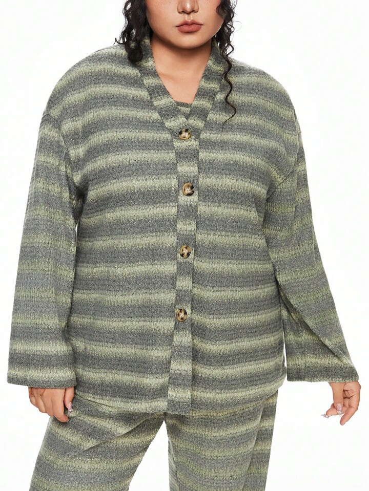 3pcs Plus Size Floral Print Sherpa Waffle Pattern Comfortable Soft Pajama Set