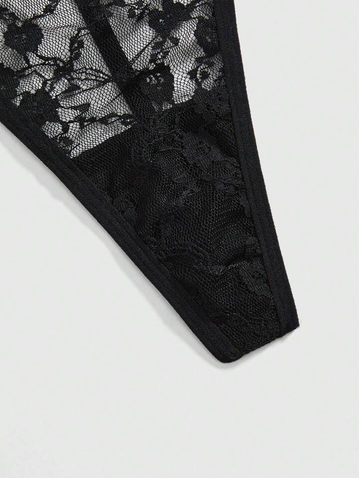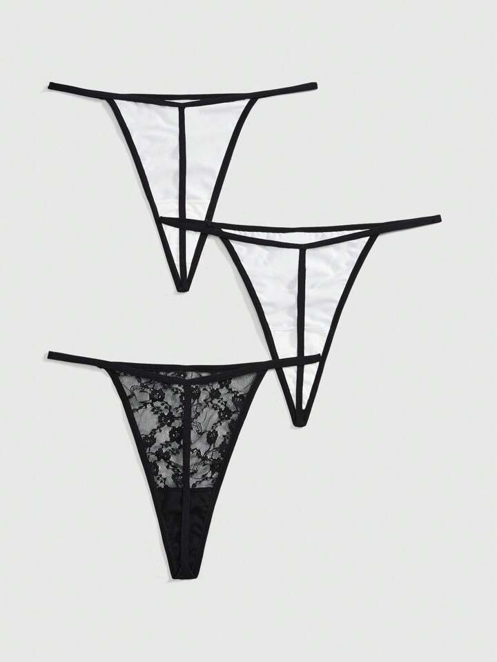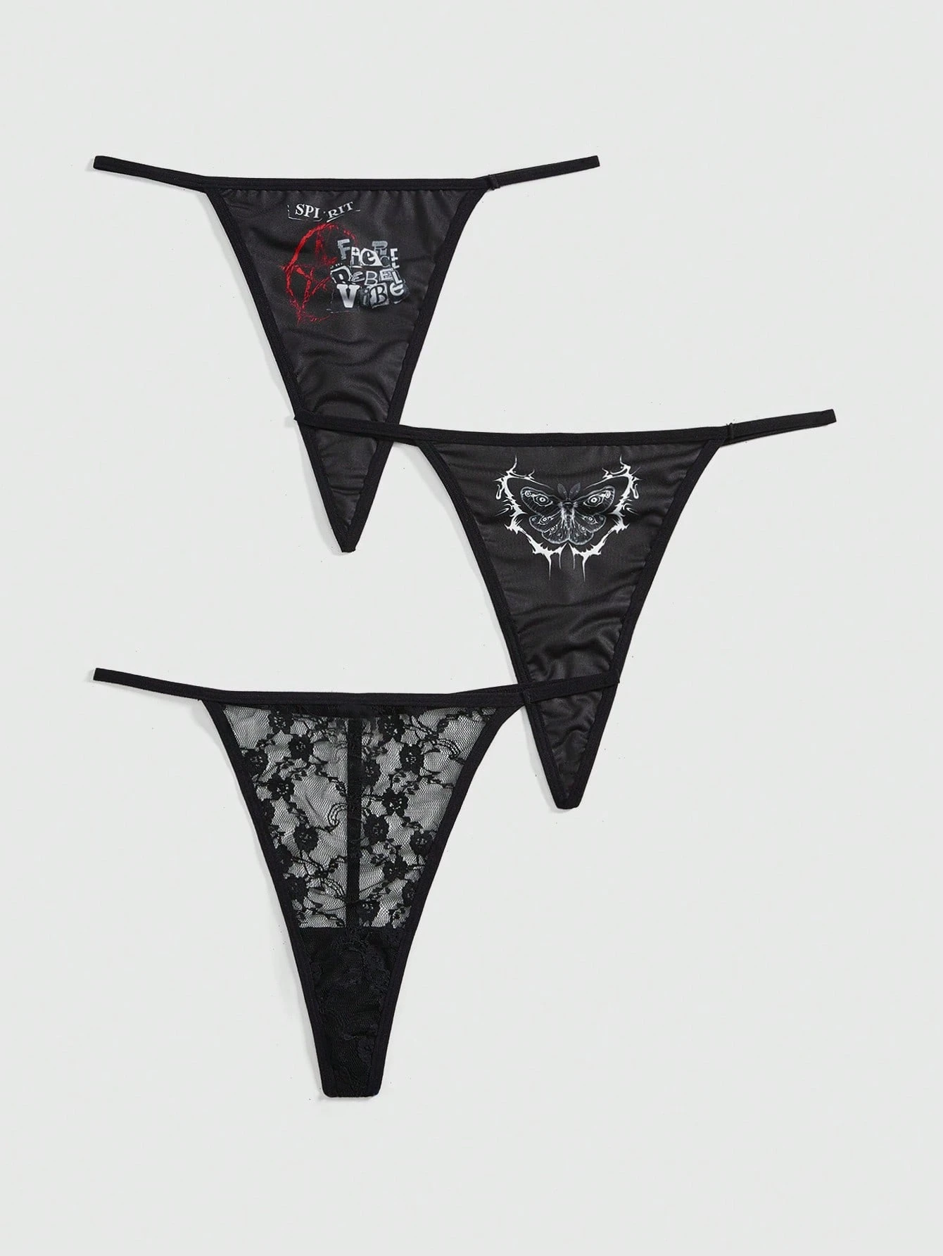 3pcs/Set Goth Style Six-Eyed Moth Punk Street Patchwork Design Lace Thong Underwear Set