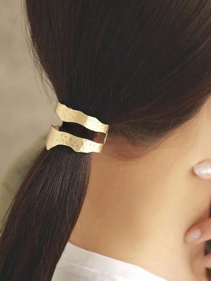 3pcs/Set Ladies Fashionable Ponytail Holder Hair Clips In Antique Gold Elegant