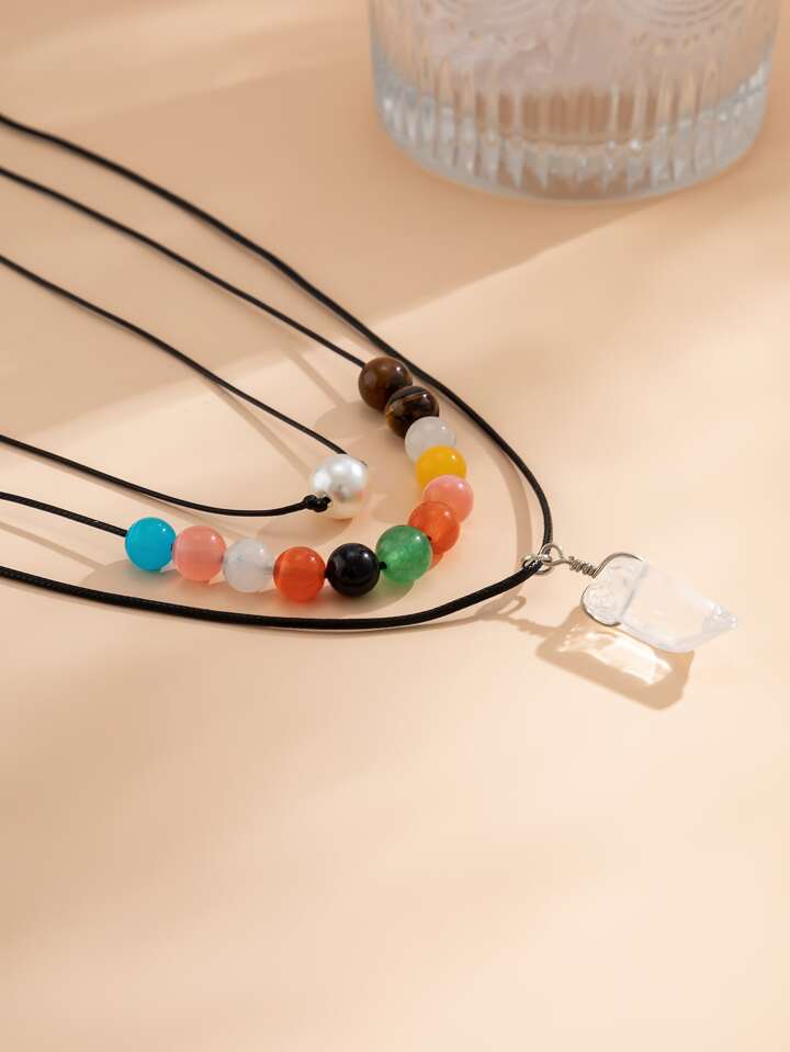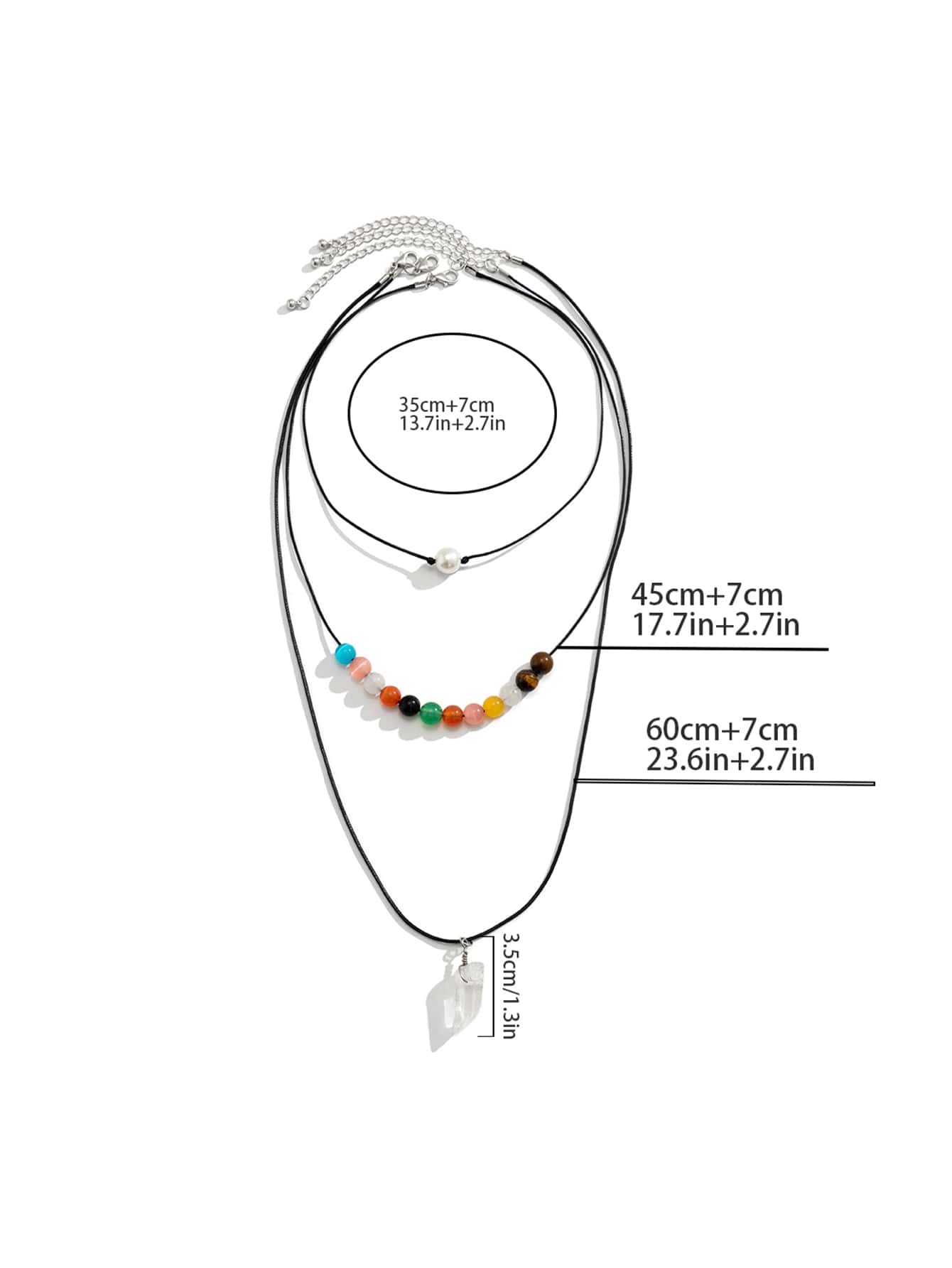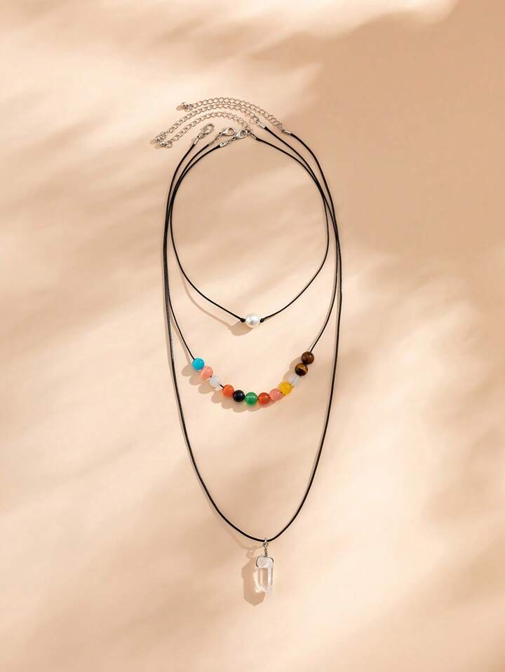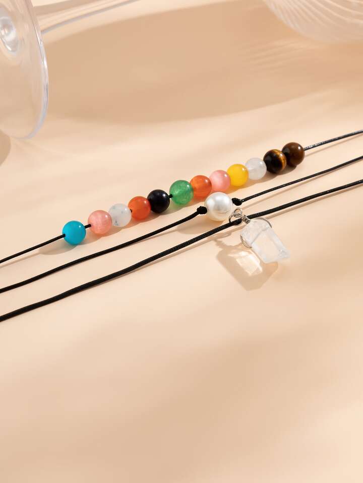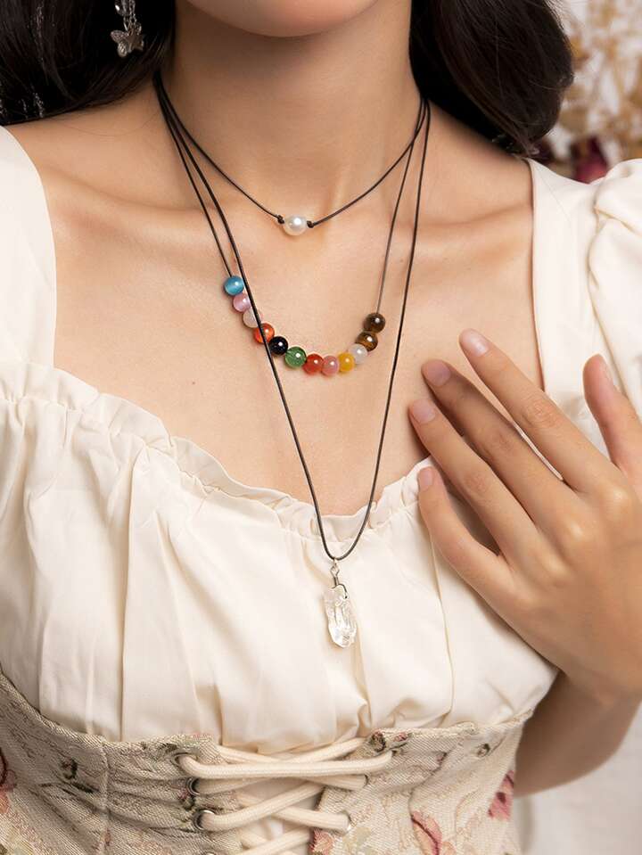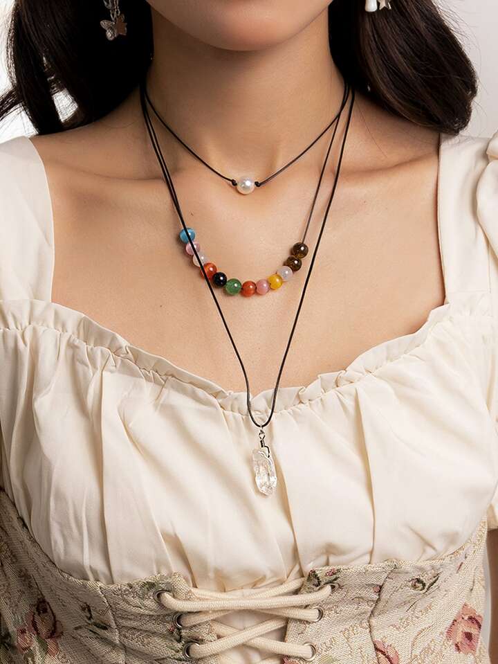 3pcs/set Fashionable PU Polyurethane Faux Pearl & Geometric Decor Necklace For Women For Daily Decoration