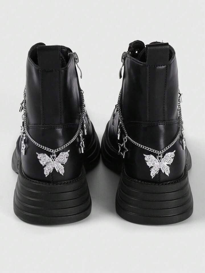 4pcs/2pcs Gothic Style Silver Hollow Star, Butterfly, Bear Shaped Pendant Shoe Boot Decorative Combination Set, Suitable For Women/Girls, Daily Wear And Holiday Gifts