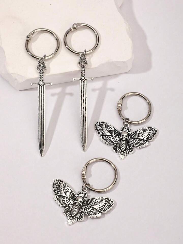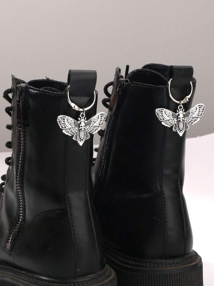 4pcs Retro Gothic Moth, Skull, Cat, Sword, Cross Shaped Shoe Decorations Fall