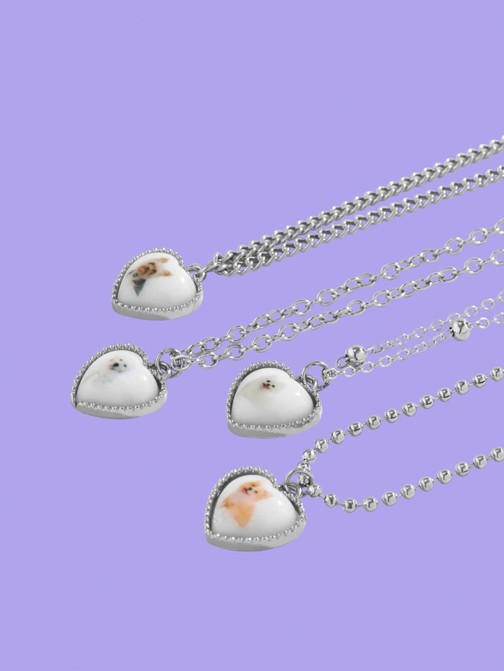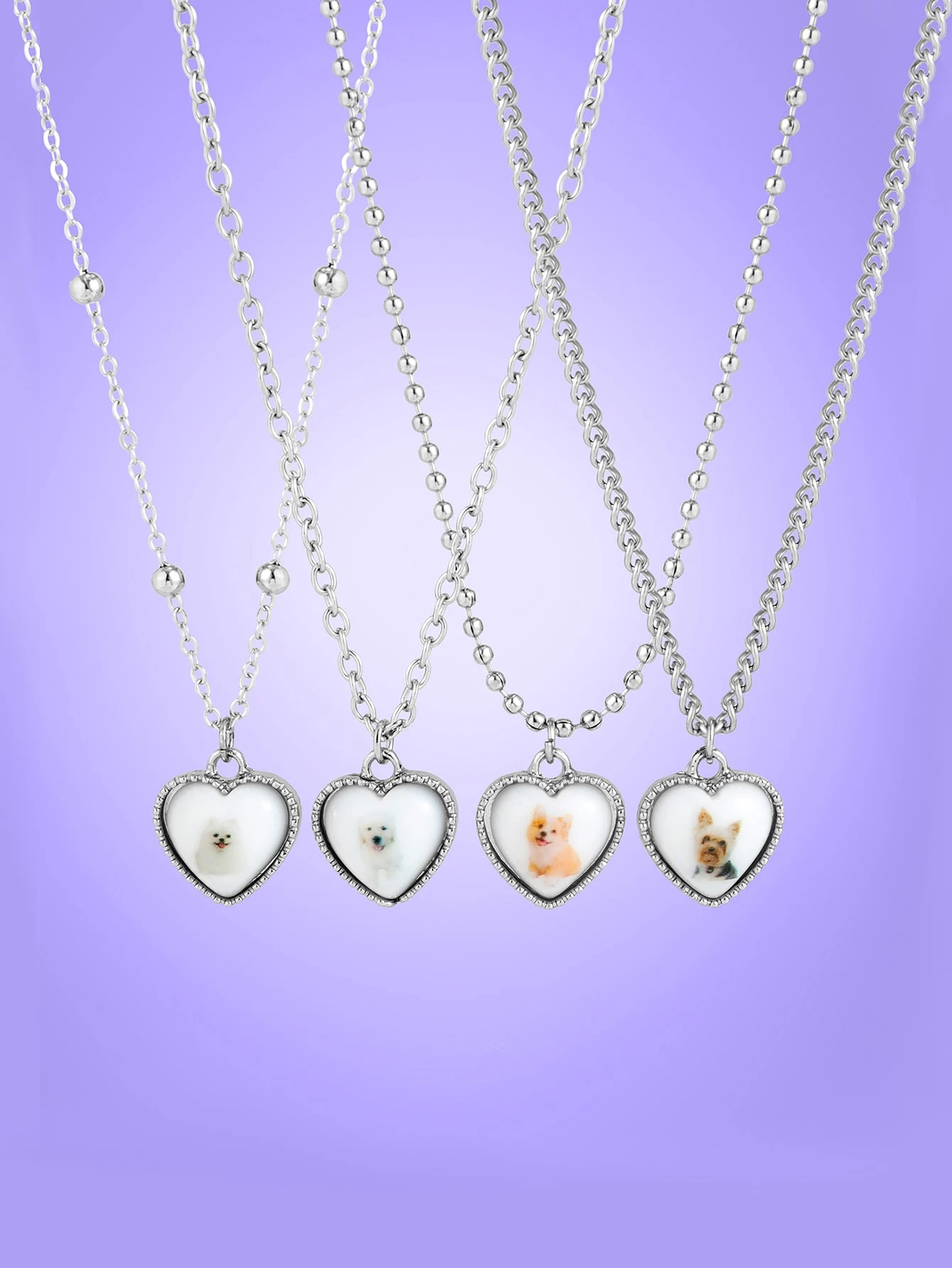 4pcs/set Dog Pattern Heart Pendant Necklace