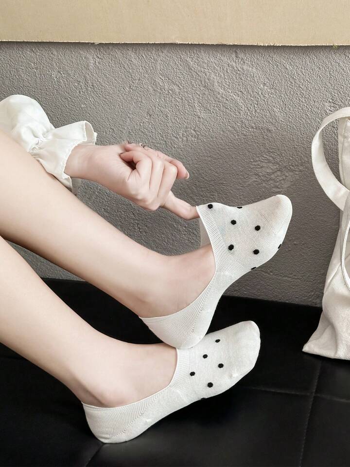 5 Pairs Women's Polka Dot Solid Color Minimalist Casual Short Socks, Fashionable And Versatile For Spring And Summer