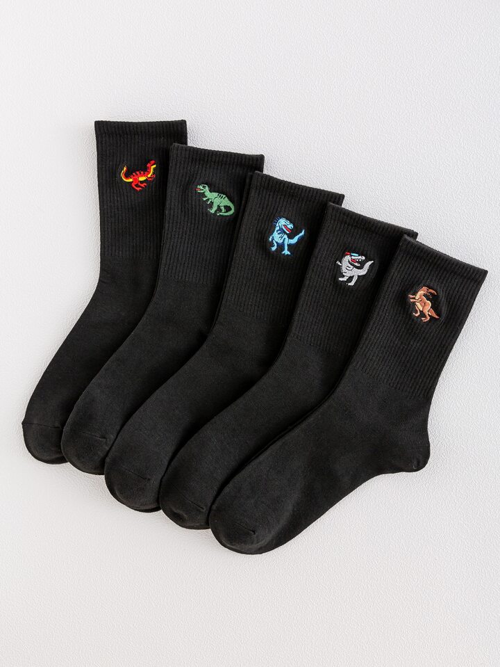 5pairs Guys Dinosaur Embroidered Crew Socks