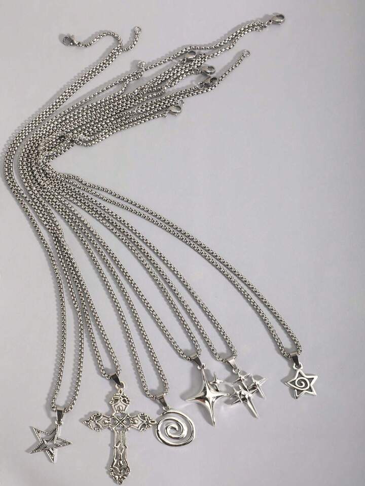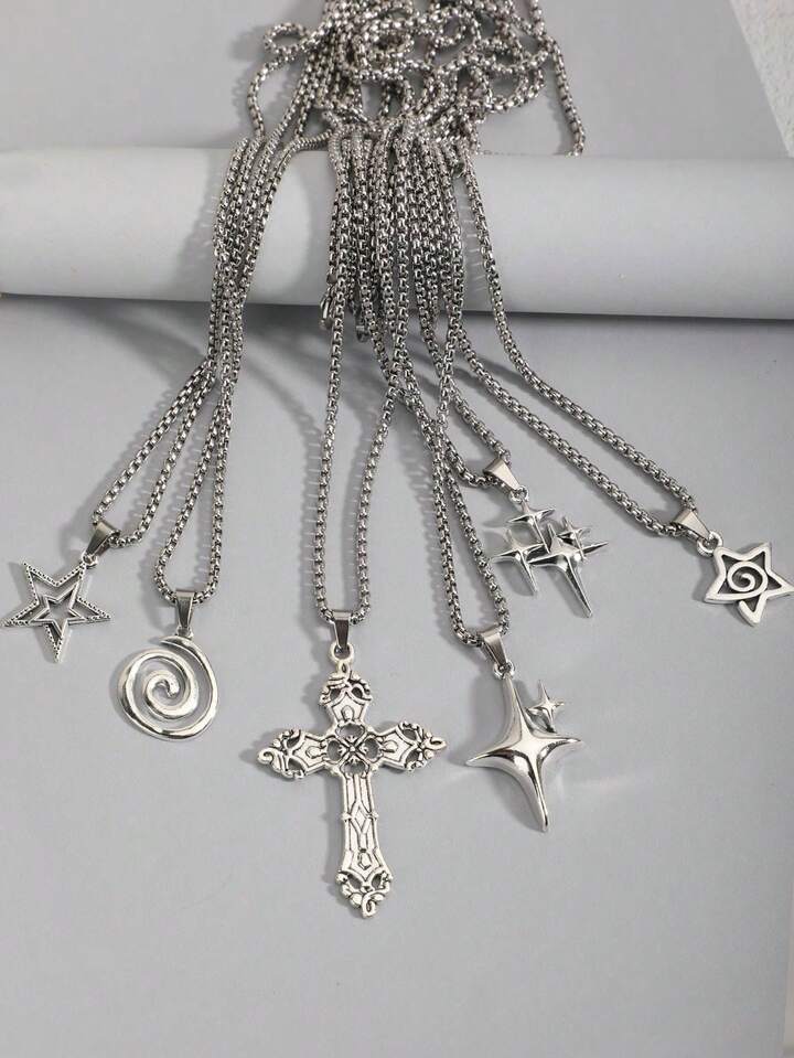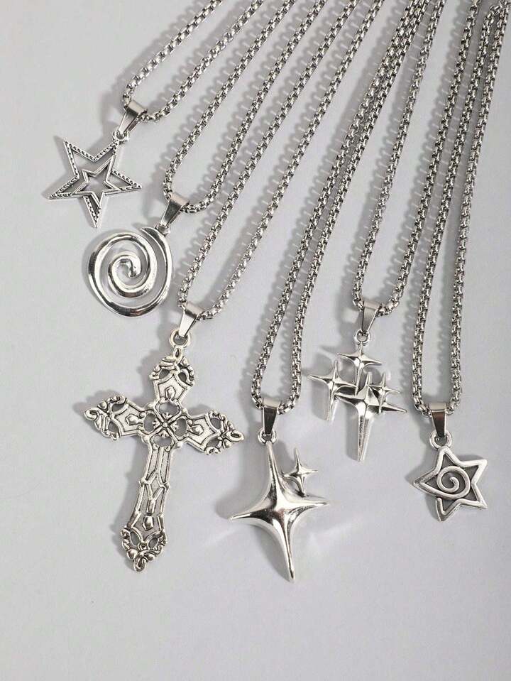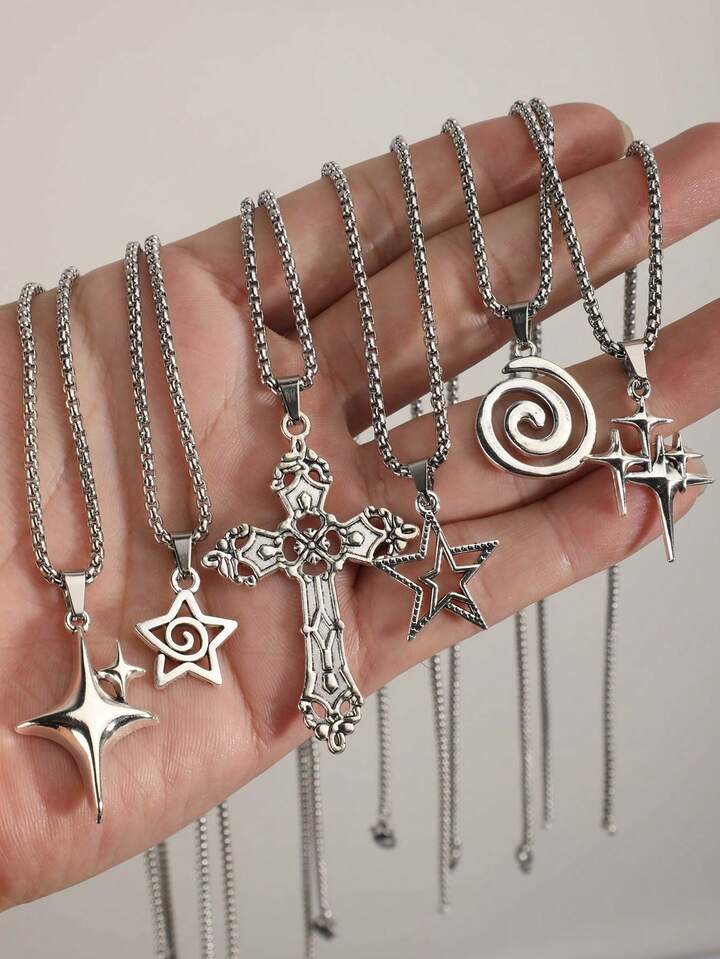 5pcs Vintage Gothic Cross, Sun, Moon, Moth, Skull Necklace Set