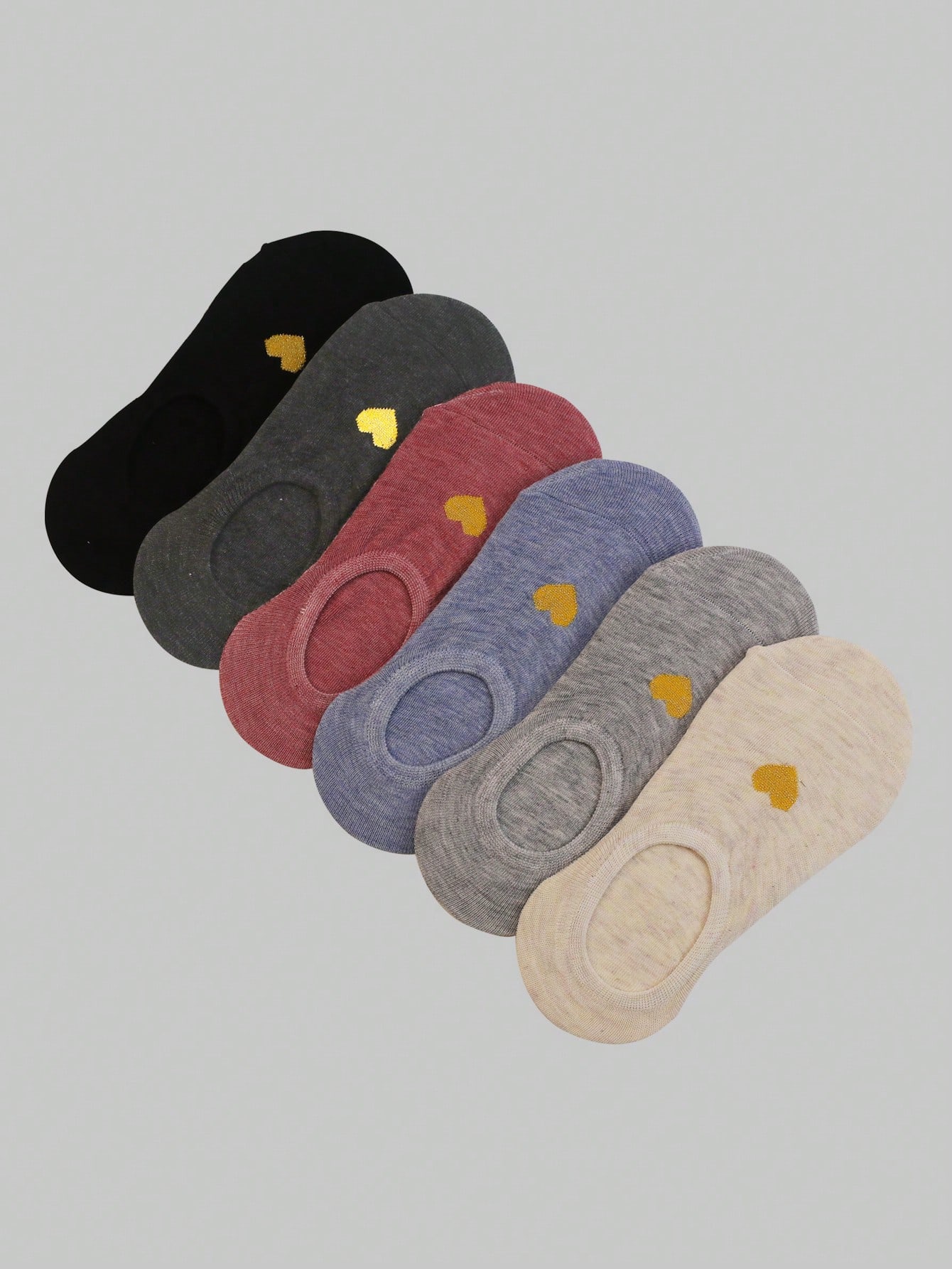 6 Pairs Women's Simple & Practical Heart Pattern Ankle Socks, No Show Socks, Multi-Functional
