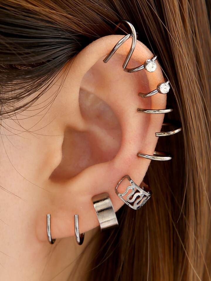 6pairs Fashion Zinc Alloy Rhinestone Decor Ear Cuff For Women For Daily Decoration