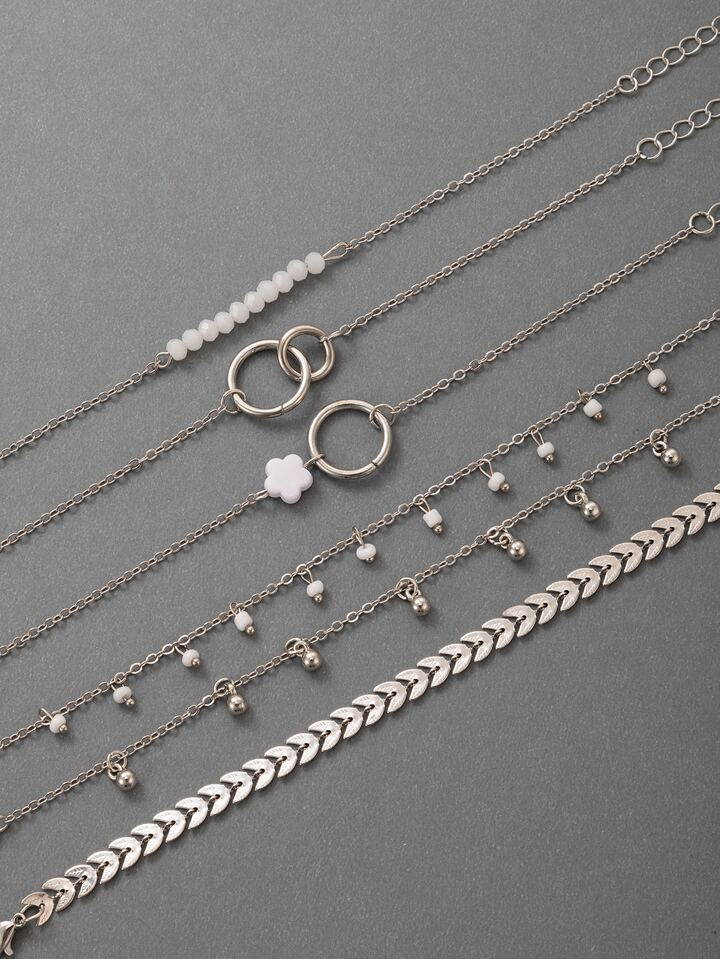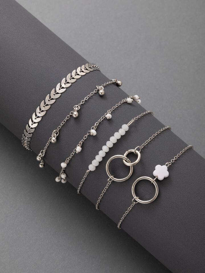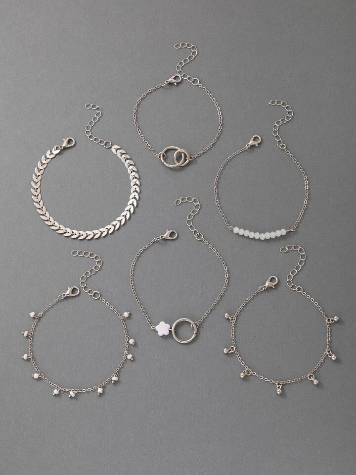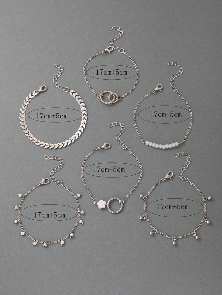 6pcs/set Fashion Zinc Alloy Flower & Bead Decor Bracelet For Women For Daily Decoration