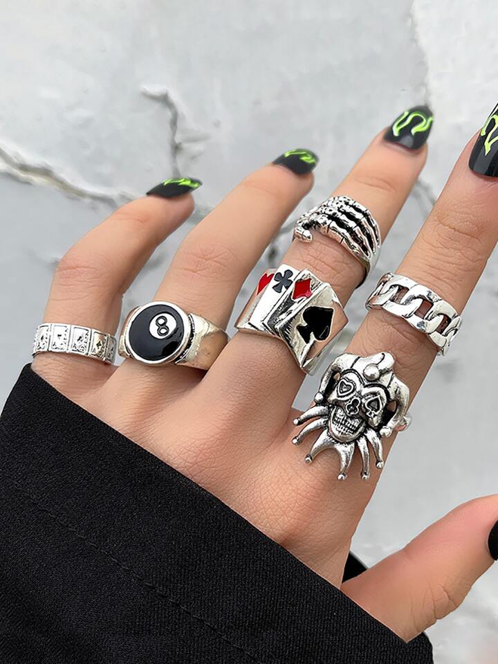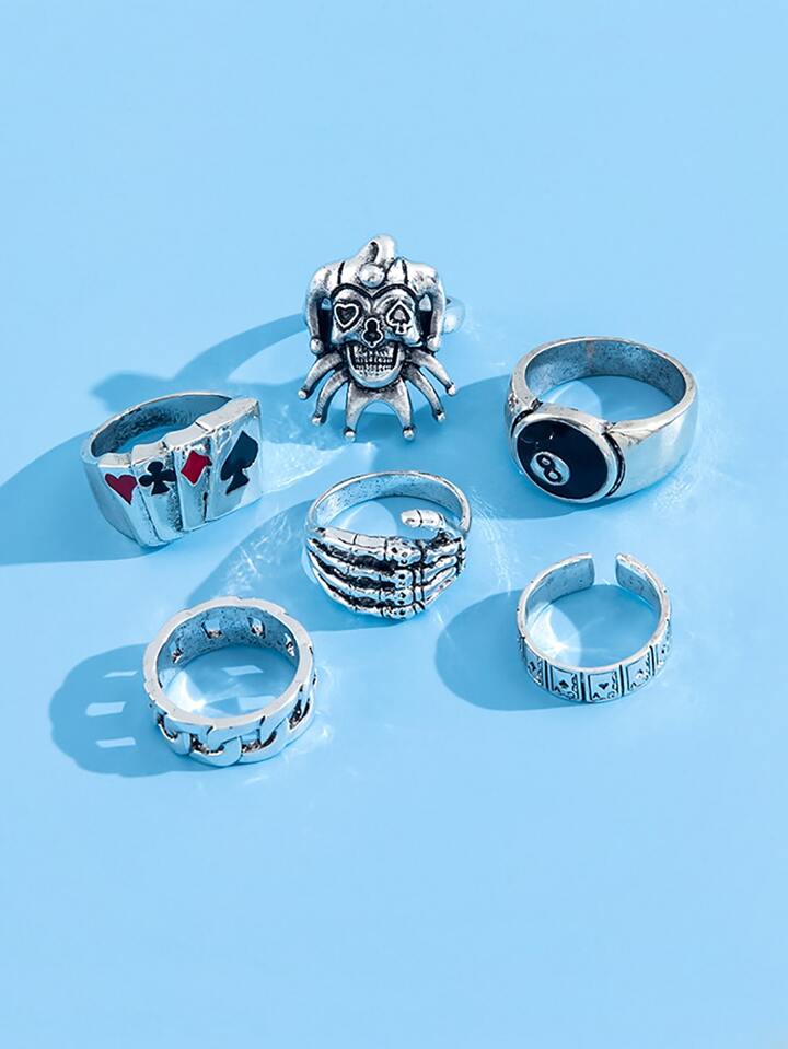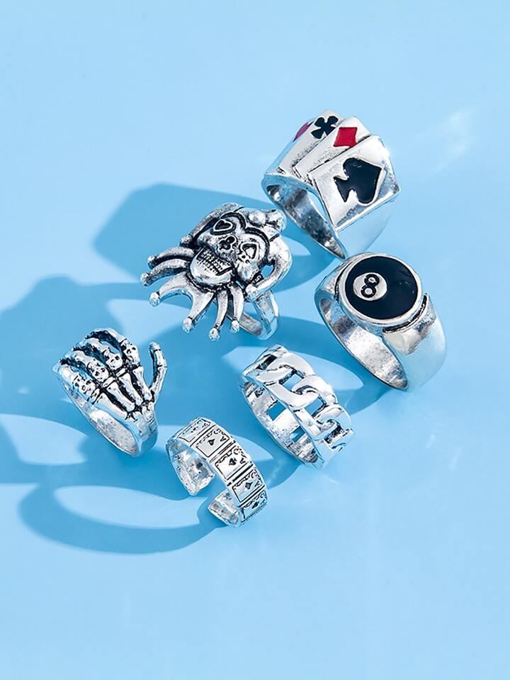 6pcs/set Playing Card Decor Ring