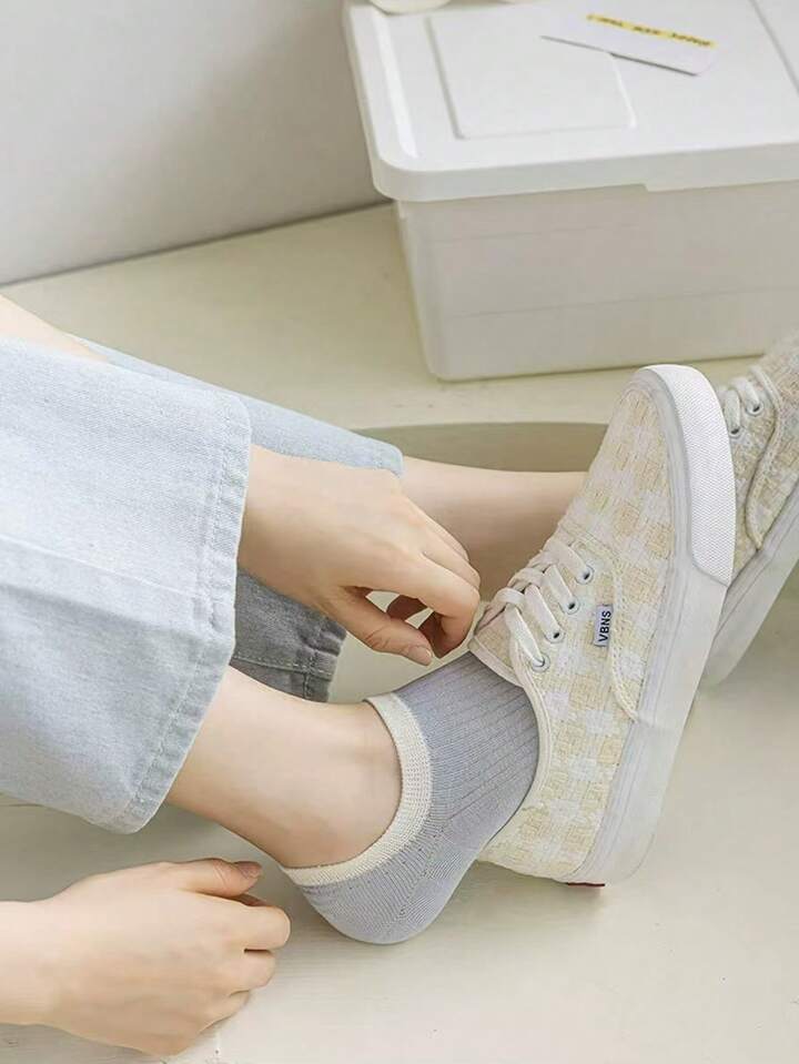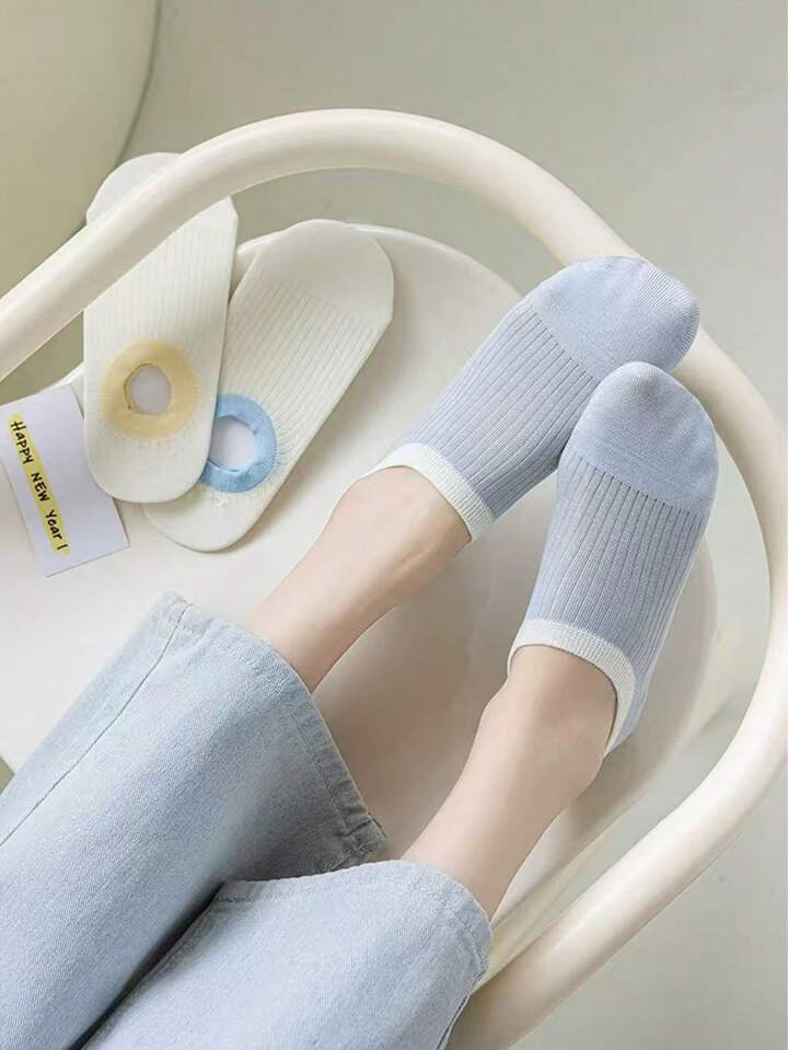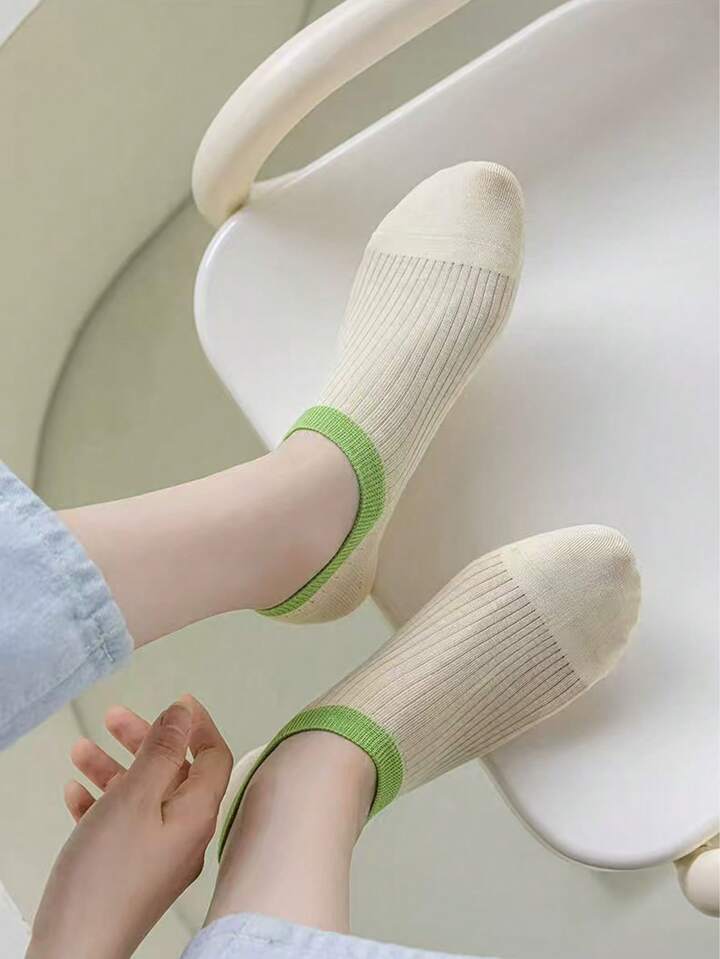 8 Pairs Collegiate Style Colorblock Breathable Invisible Socks For Women, Casual Boat Socks, Suitable For Spring And Summer