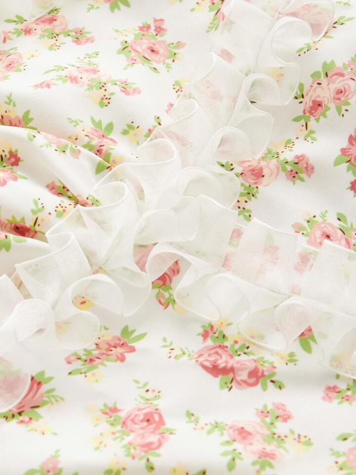 90s Floral Print Tie Shoulder Frill Trim Peplum Cami Top