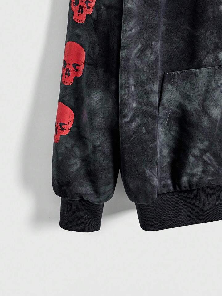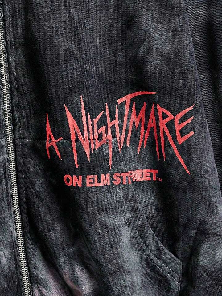 A Nightmare on Elm Street X ROMWE Women's Casual Tie-Dye Letter & Skull Print Zip-Up Hoodie Sweatshirt, Autumn