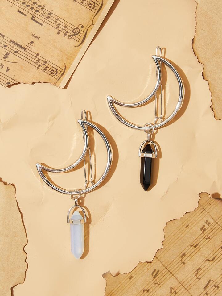 Academia 2pcs Geometric Charm Moon Design Minimalist Hair Clip