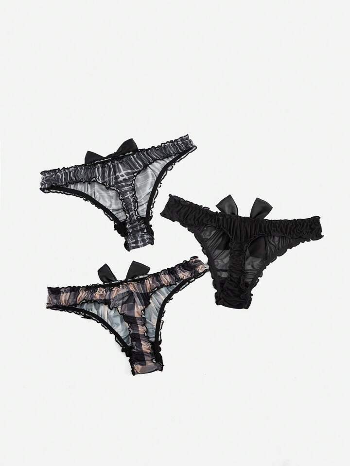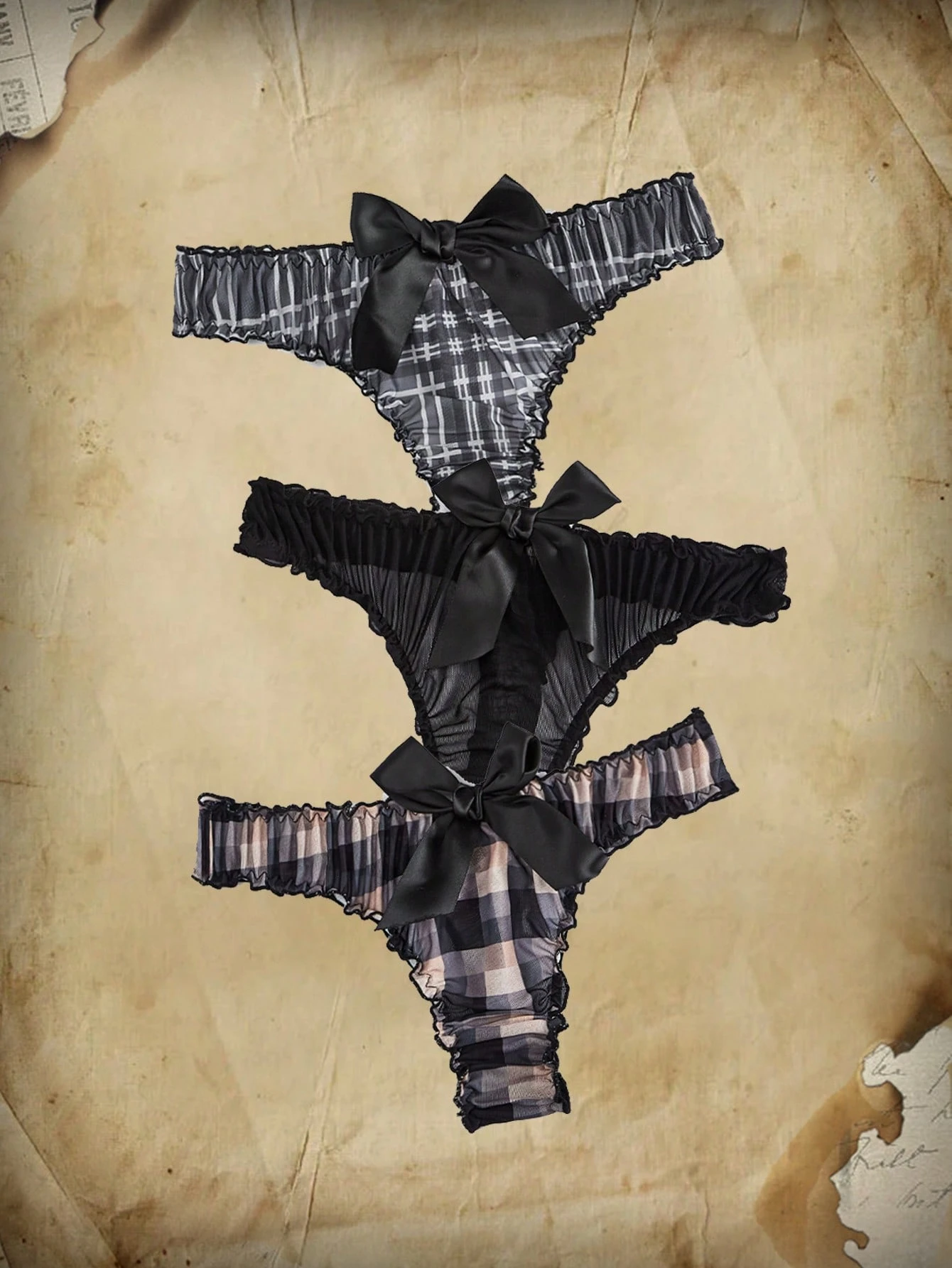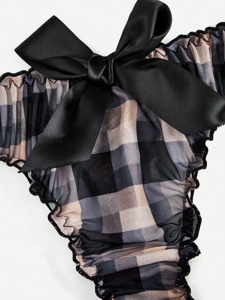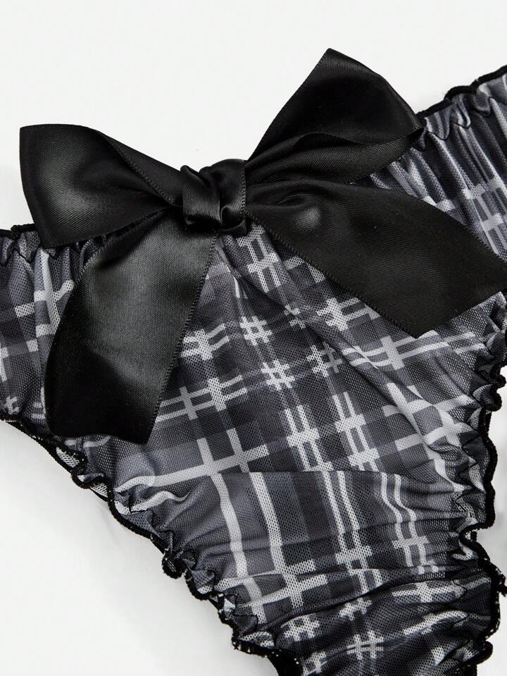 Academia 3pack Plaid Bow Decor Thong Set