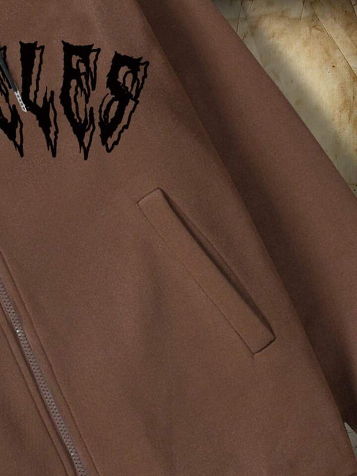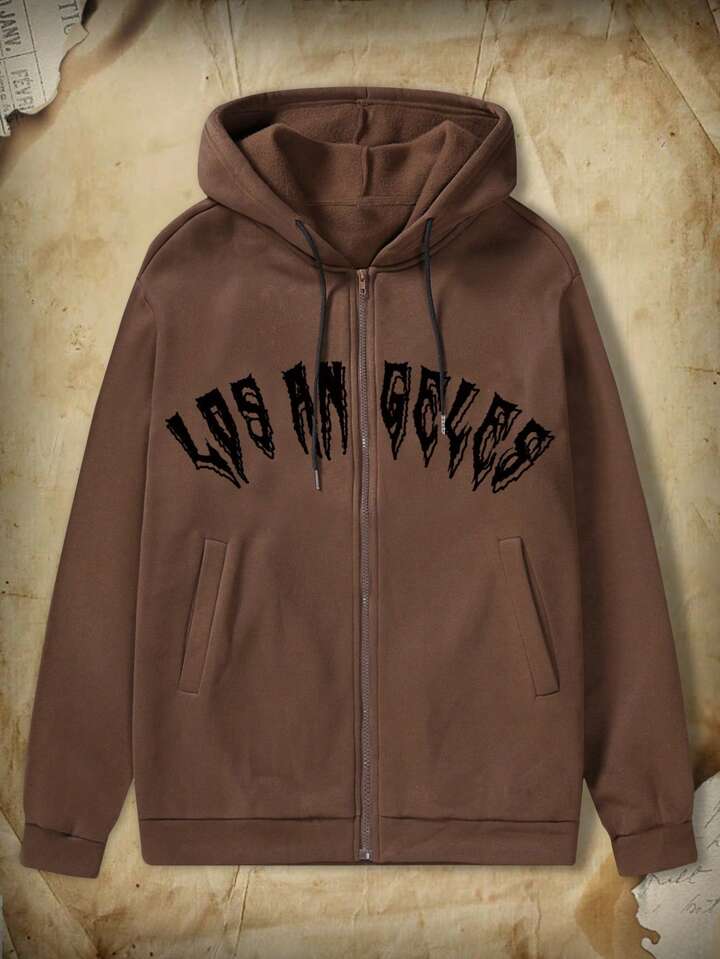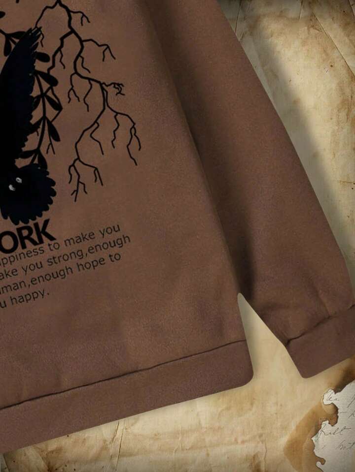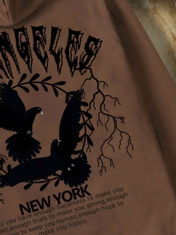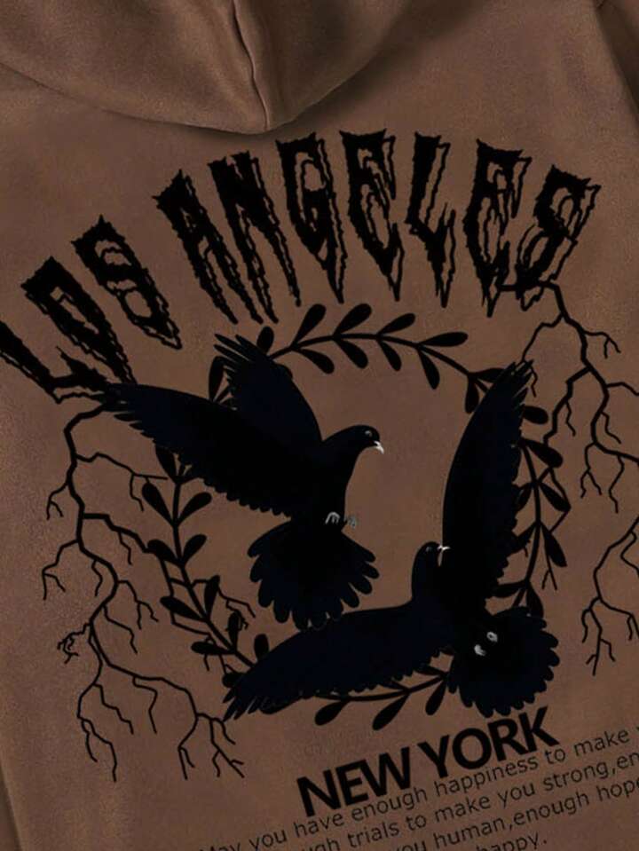 Academia Guys Pigeon & Slogan Graphic Drawstring Hoodie