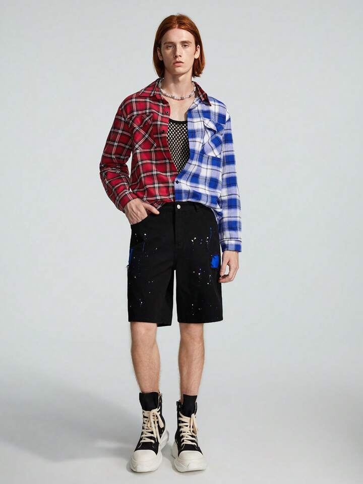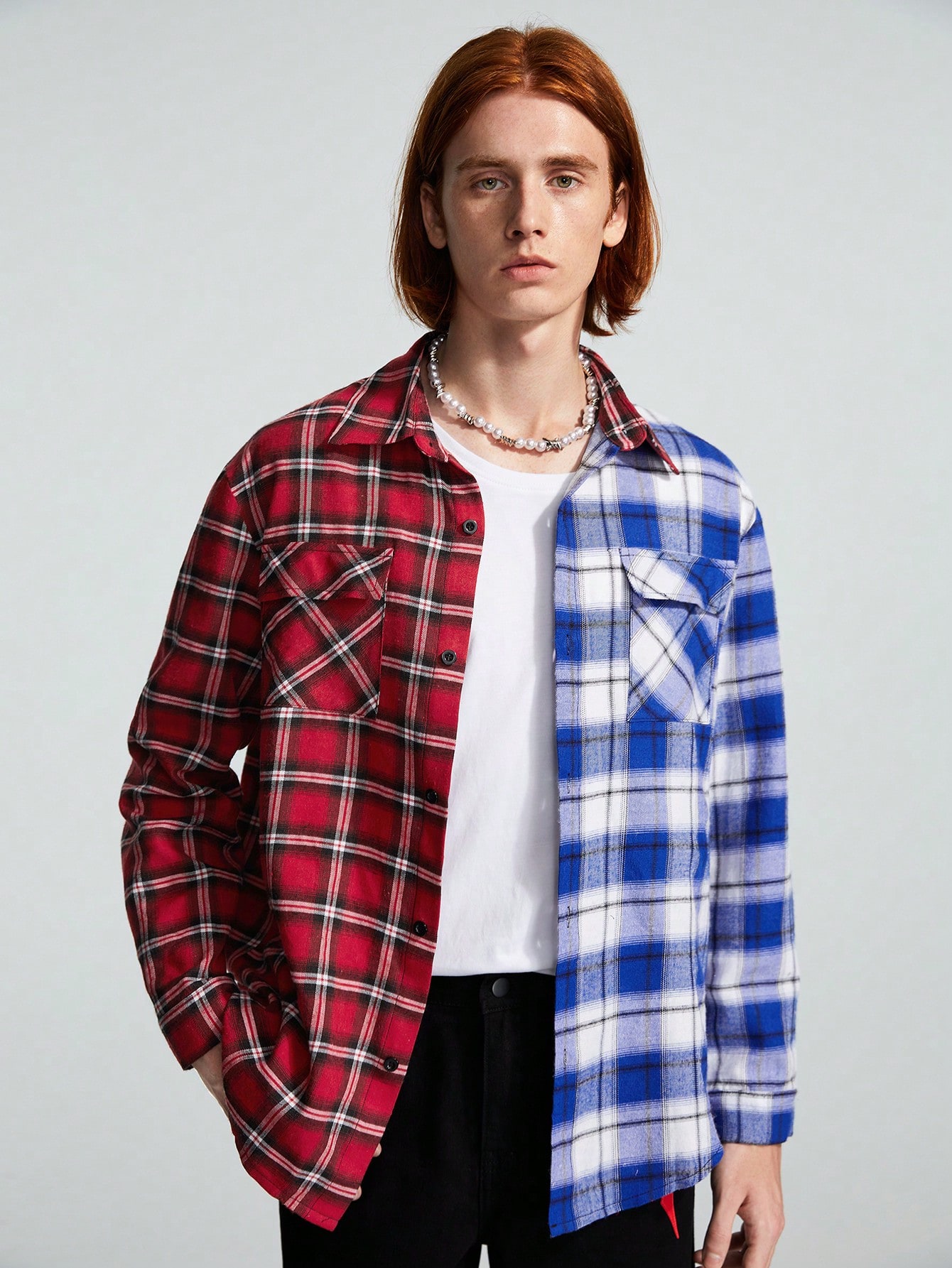 Academia Guys Plaid Print Colorblock Flap Pocket Shirt