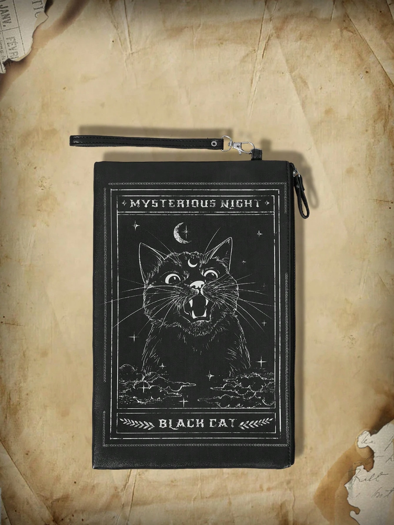 Academia Medium Wristlet Bag Cartoon Cat Pattern Tassel Decor For Work