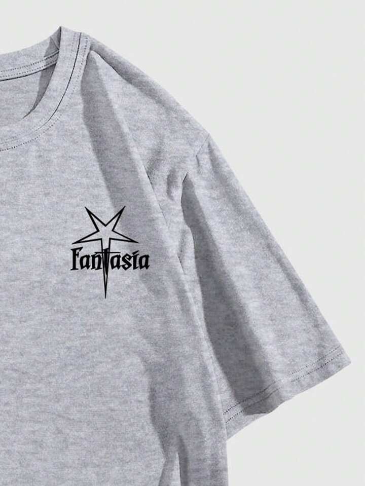 Academia Men Round Neck Short Sleeve Letter Printed Minimalist T-Shirt, Casual Daily Wear