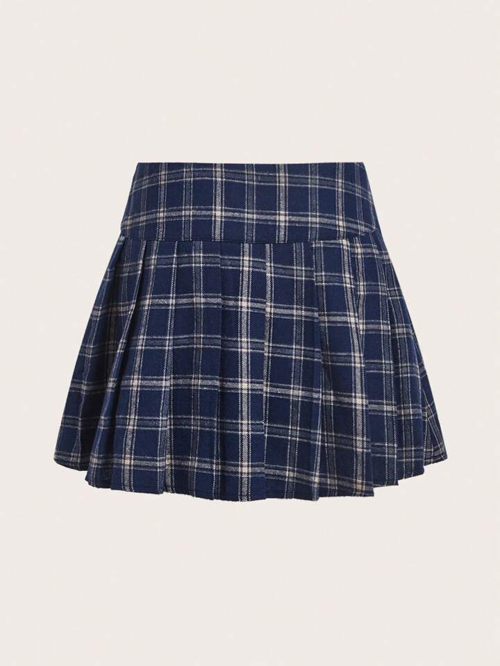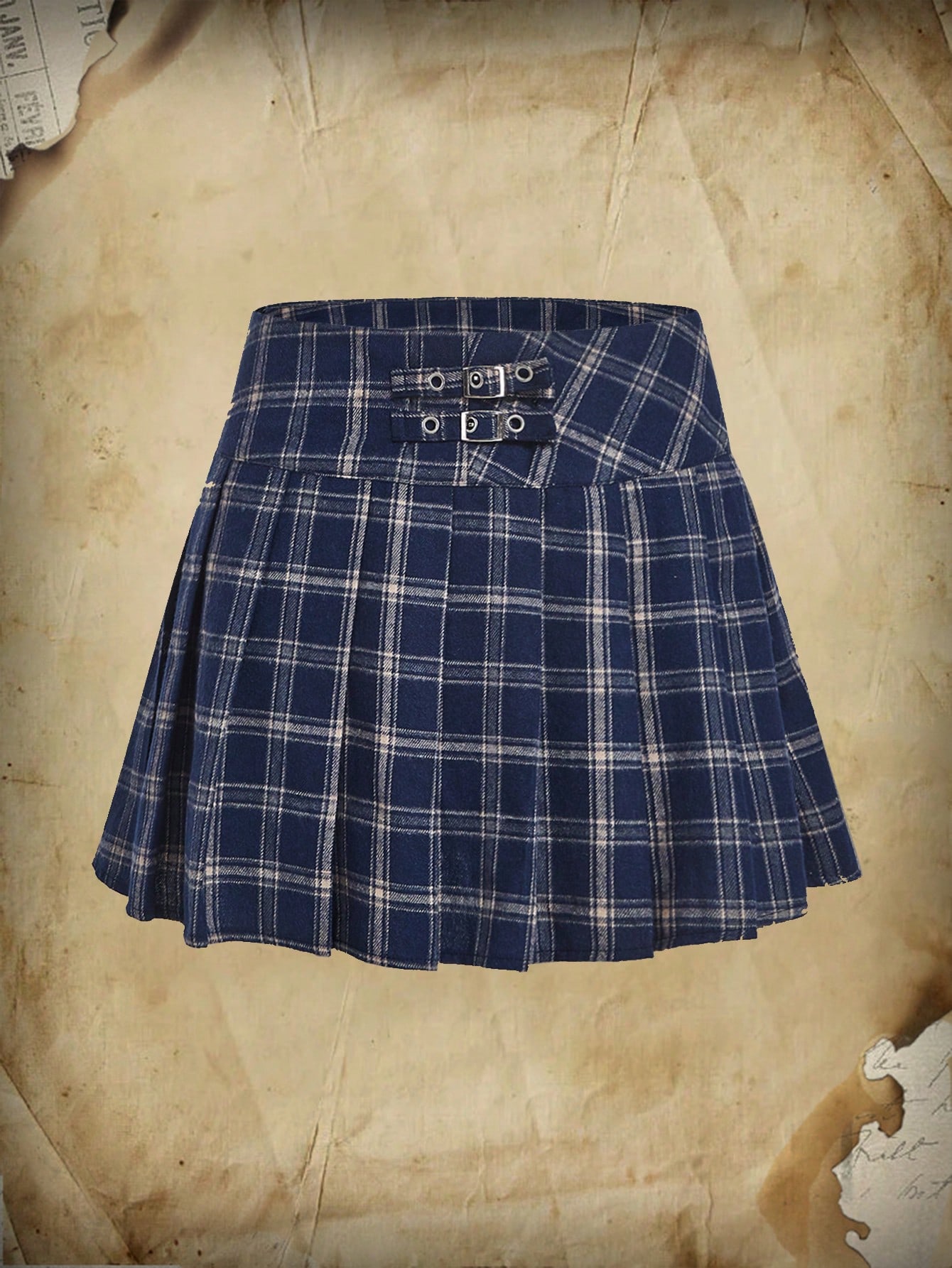 Academia Plaid Print Buckle Detail Pleated Skirt