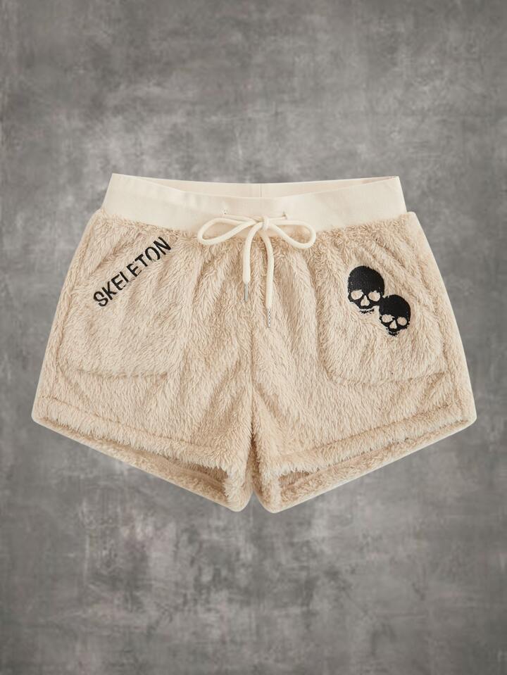 Academia Skull Embroidery Drawstring Waist Teddy Shorts