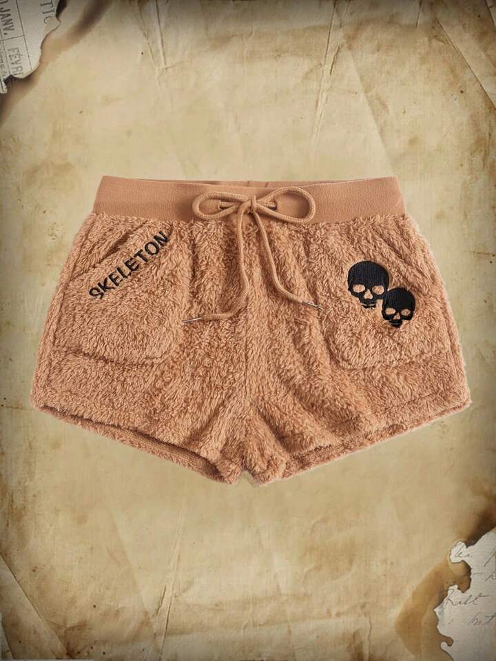 Academia Skull Embroidery Letter Graphic Drawstring Shorts