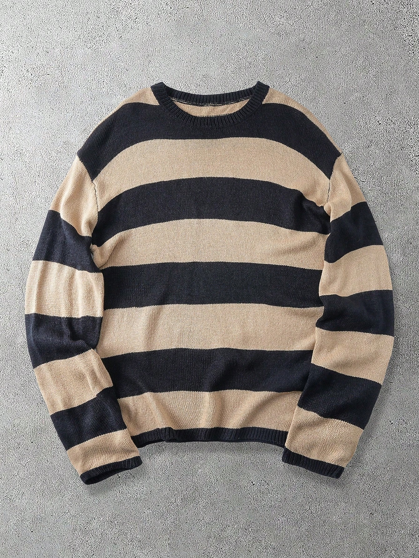 Academia Spring/Summer Casual Graphic Men'S Casual Colorblock Striped Sweater, Autumn/Winter