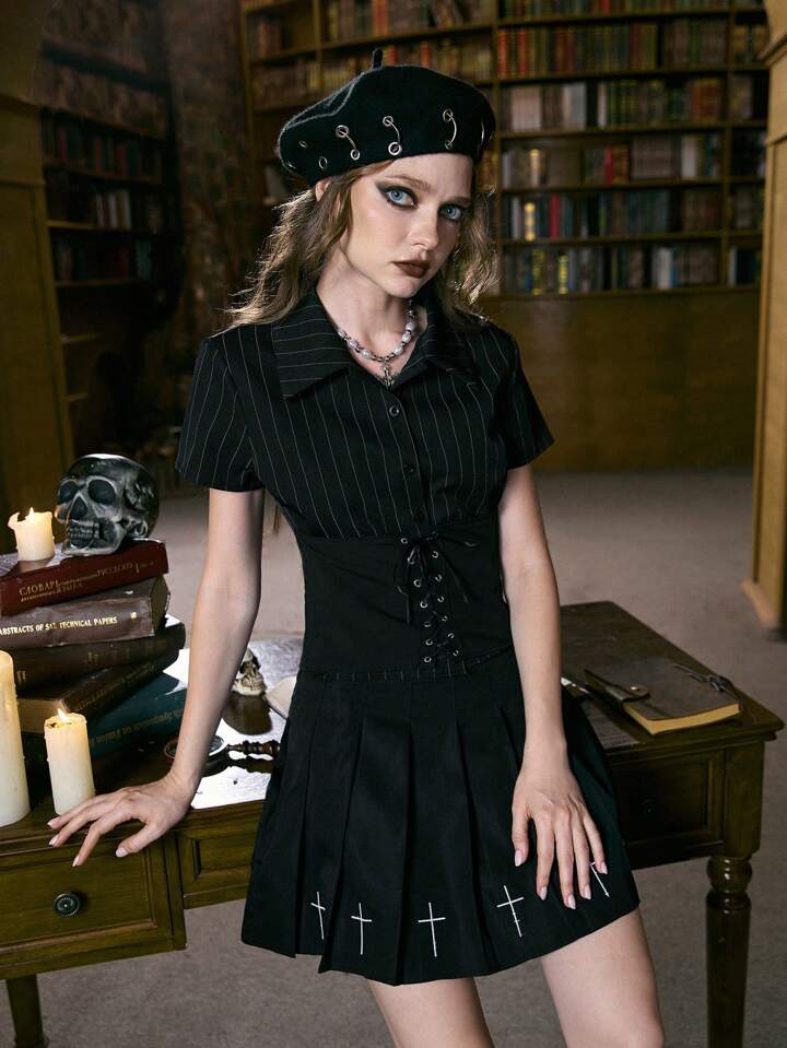 Academia Striped Lace Up Front Shirt