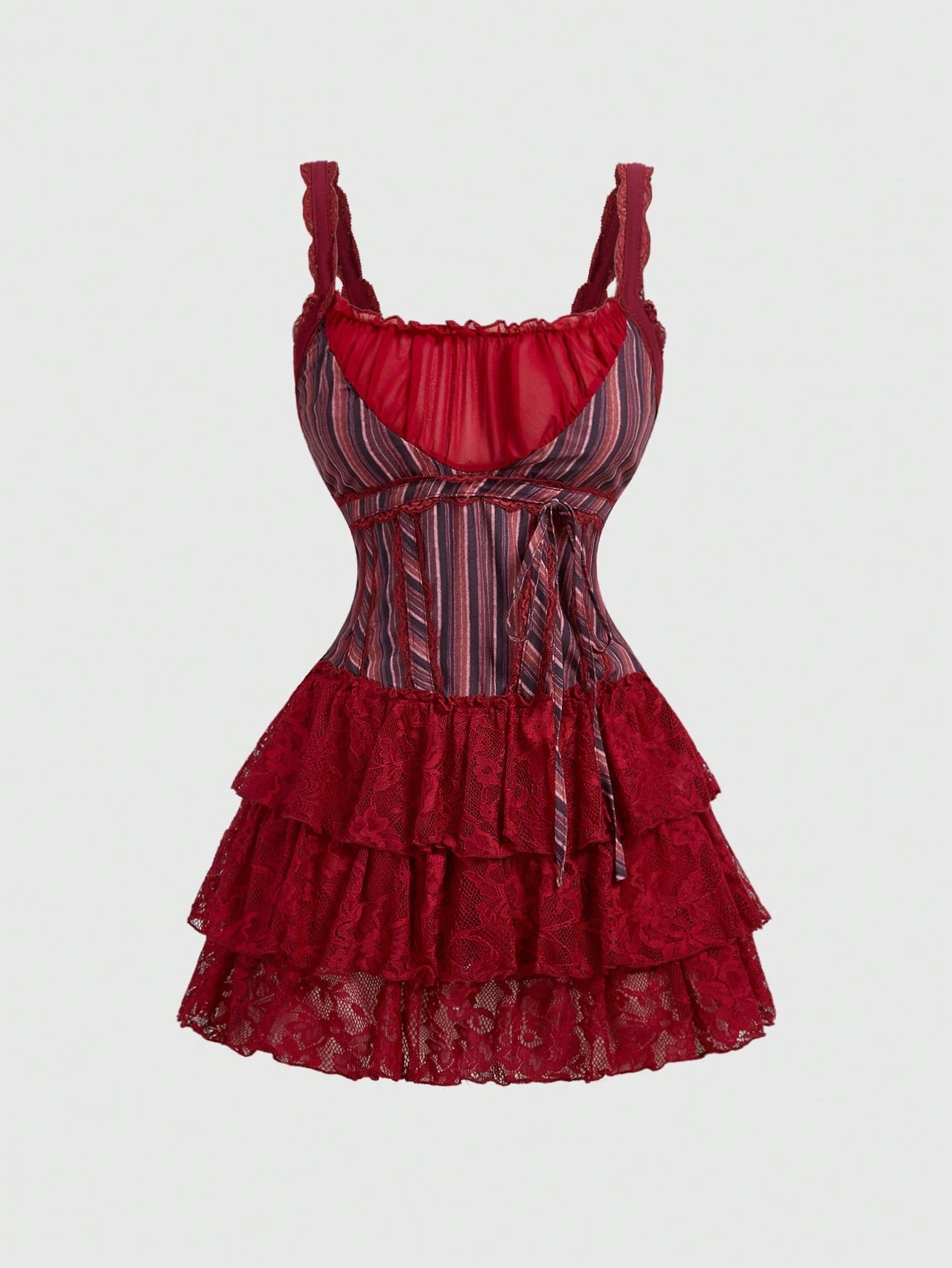 Academia Vintage Striped Square Collar Mini Lace Dress, Suitable For Office Wear